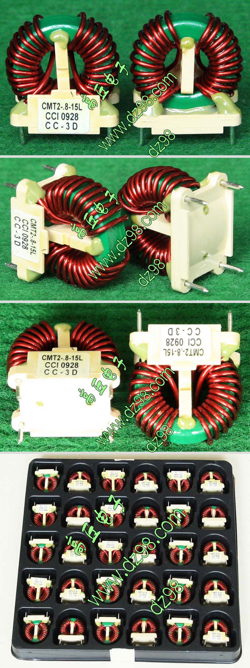 全新 | 采用直径25mm绿漆磁环绕制,漆包线直径1.4mm,重量约25克。外形大概尺寸:30毫米x21毫米x高30毫米,同绕组脚距15mm、异绕组脚距23mm。 |