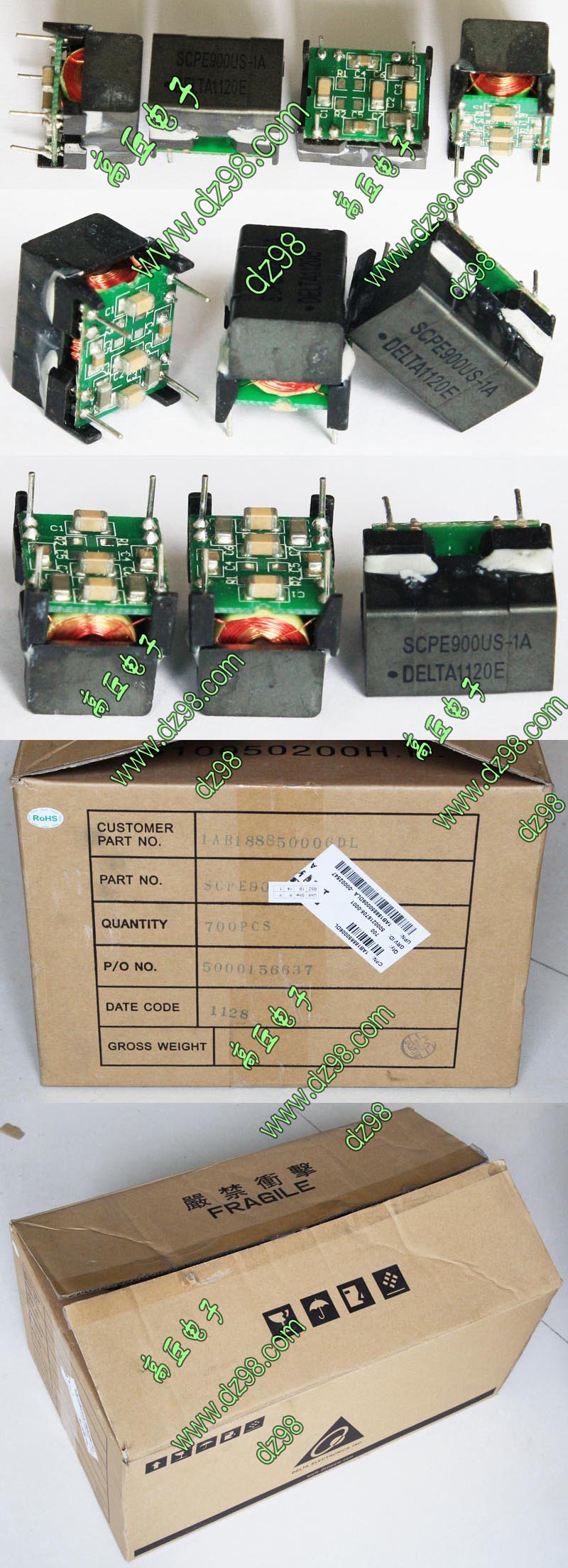 | DELTA SCPE900US-1A 变压器传感器BIA301 | 全新 | 实物如图,有6组线圈,整体外形尺寸:17毫米x13.6毫米x13毫米,重量约8克。 | 单价3元。 |