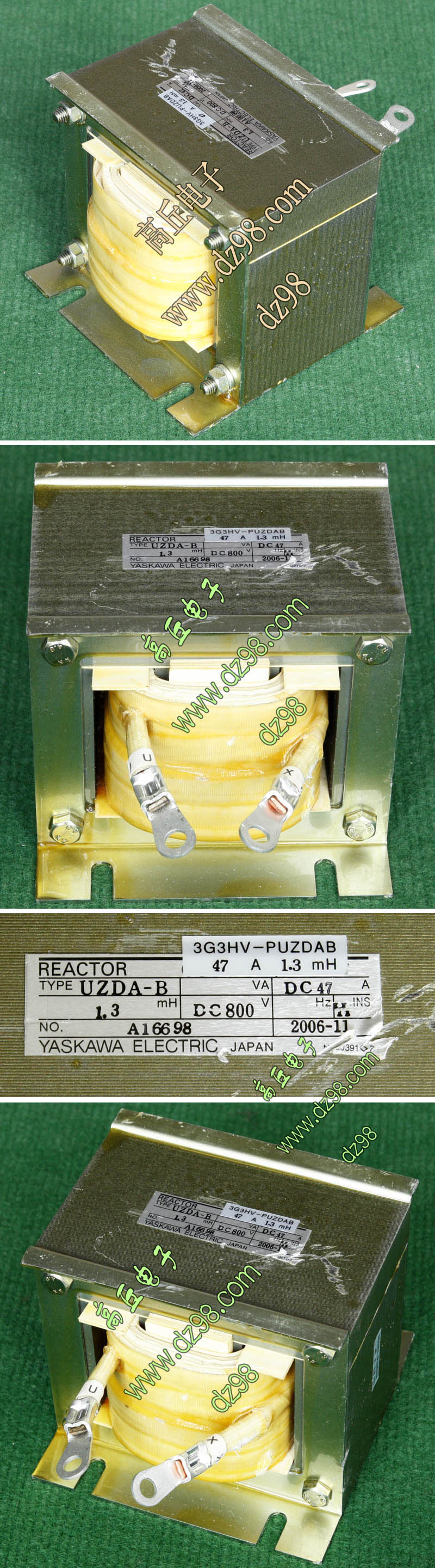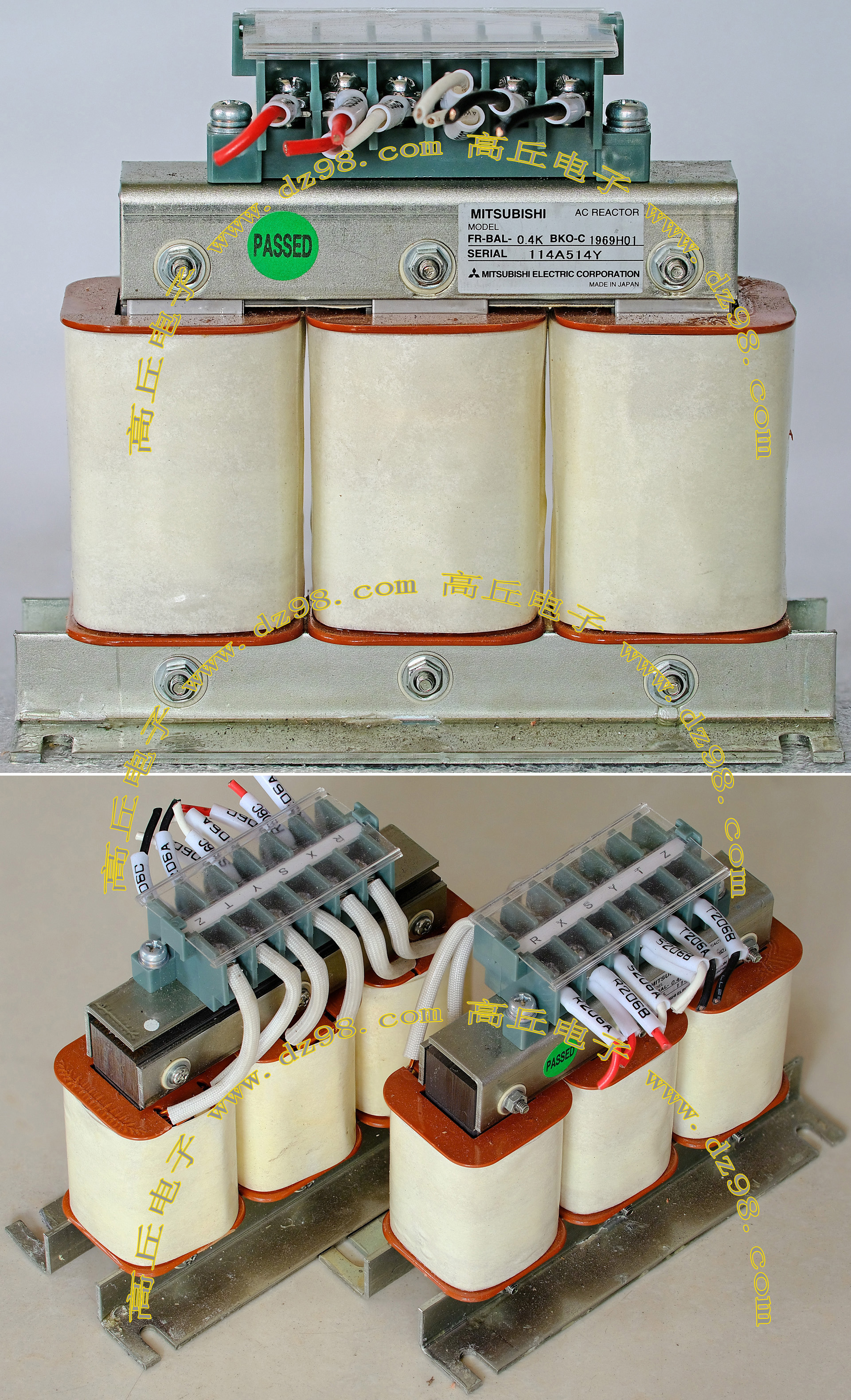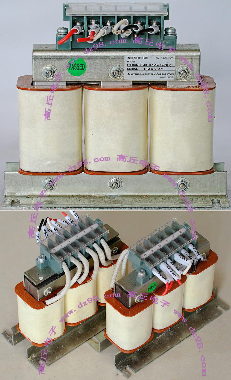 | MITSUBISHI三菱FR-BAL-0.4K BKO-C 电抗器 电感器BIA362 | 拆机件 | 进口拆机,3个绕组,每个绕组电感量约8.5mH,漆包线直径约1.3毫米,外形尺寸;136x60x高118毫米,重量约1.8公斤。 | 单价110元。 |