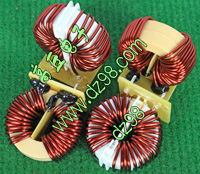 全新 | 采用直径24.4mm红漆磁环绕制,此类电感不是标准电感,其电感量每只误差很大的,漆包线直径1.05mm,重量约17.5克。外形大概尺寸:30x30mm,高度12mm,同绕组脚距17.5mm、异绕组脚距13和6.35mm。 |