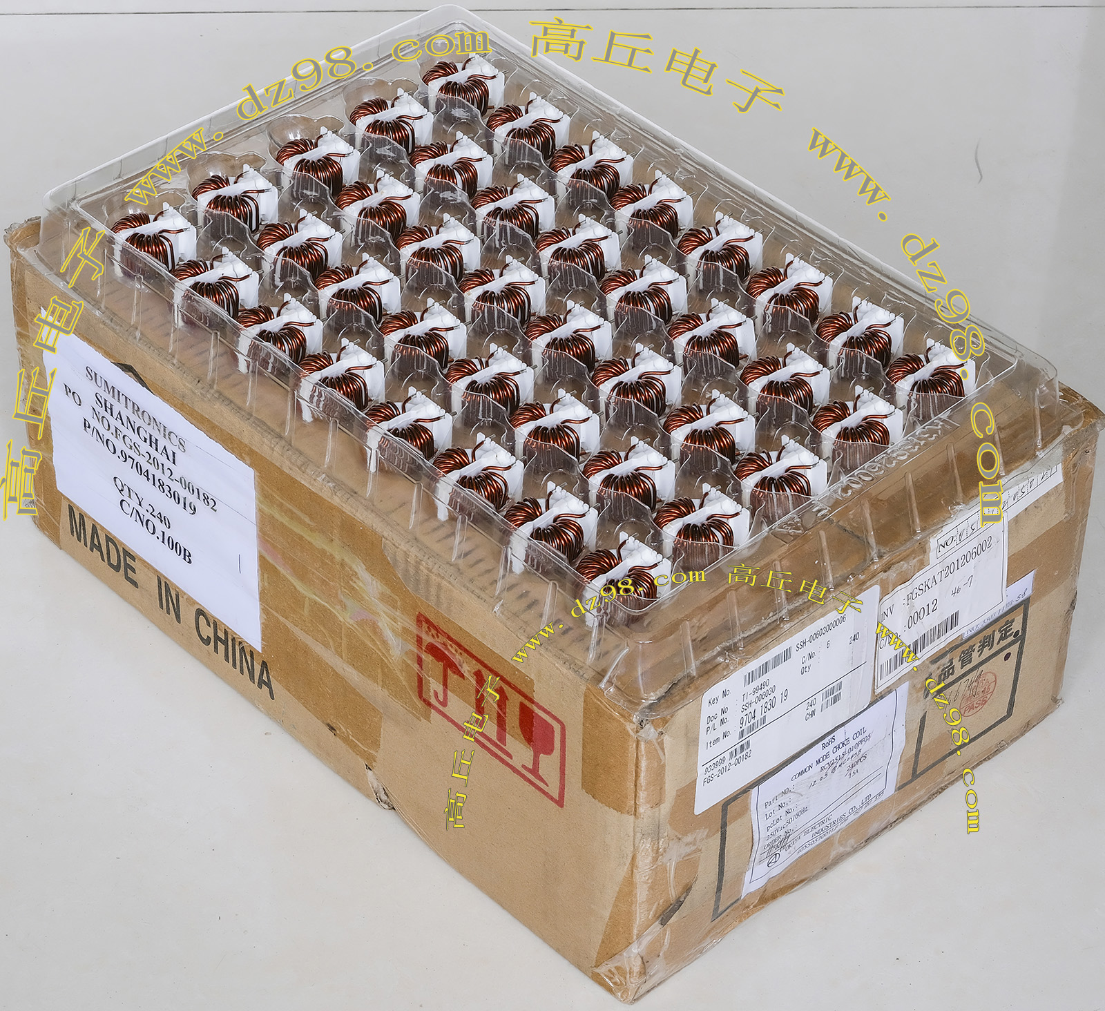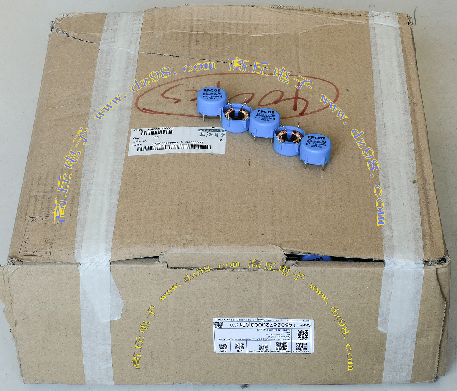 HKBS-12D090-2910RS电感器 全新原装品,产地:日本,每盒包装数量50只,电感量约300uH,漆包线直径0.9mm,磁环直径20mm,重量约25克。外形大概体积:27mm x 18mm x 高26mm。 |