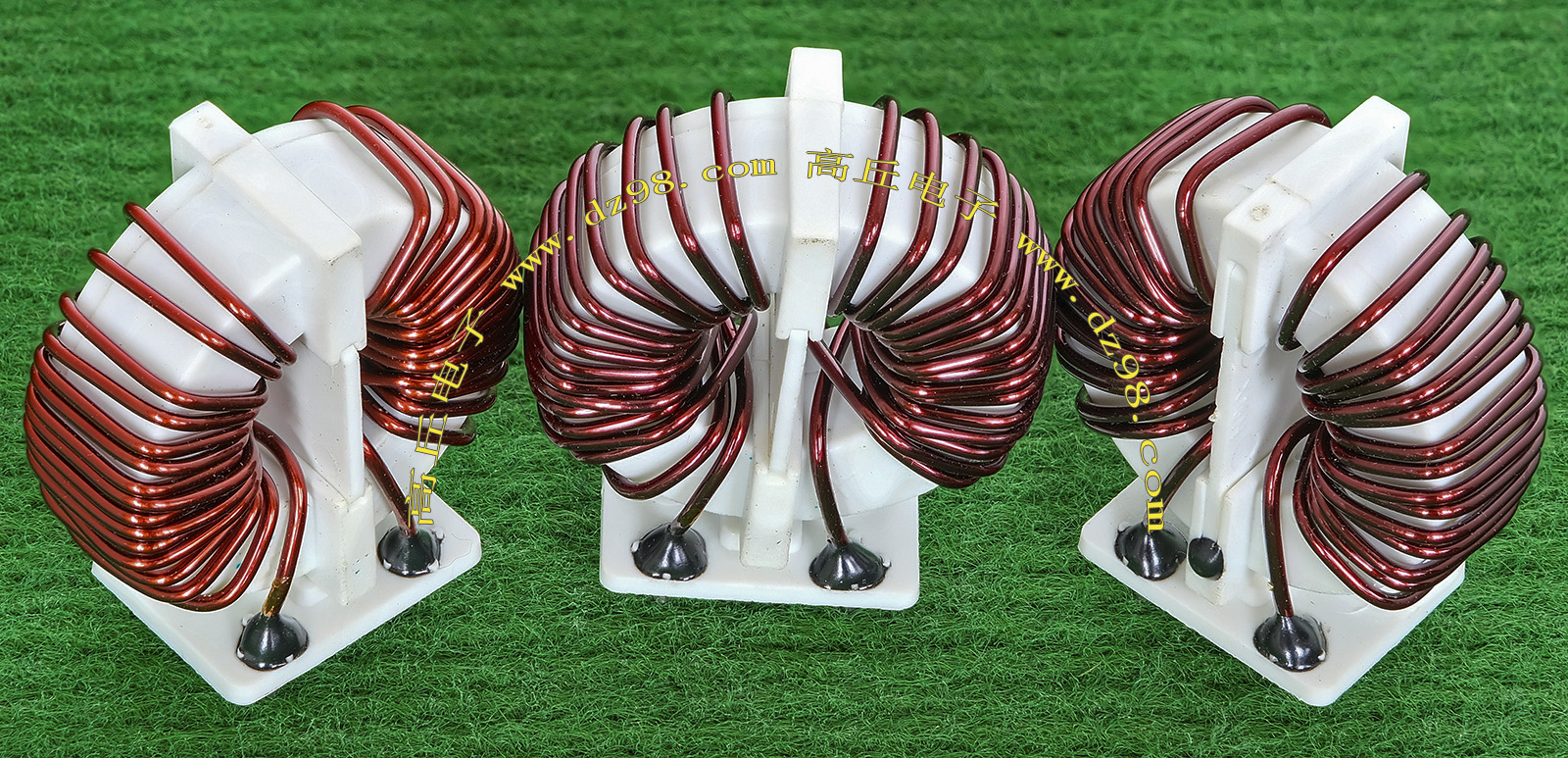全新 | 采用直径29mm白塑料壳磁环绕制,漆包线直径1.88mm,重量约29.3克。外形大概尺寸:34x20mm,高度30mm,同绕组脚距20mm、异绕组脚距12.5mm。 |
