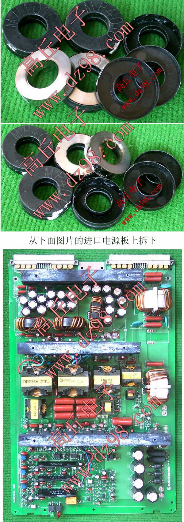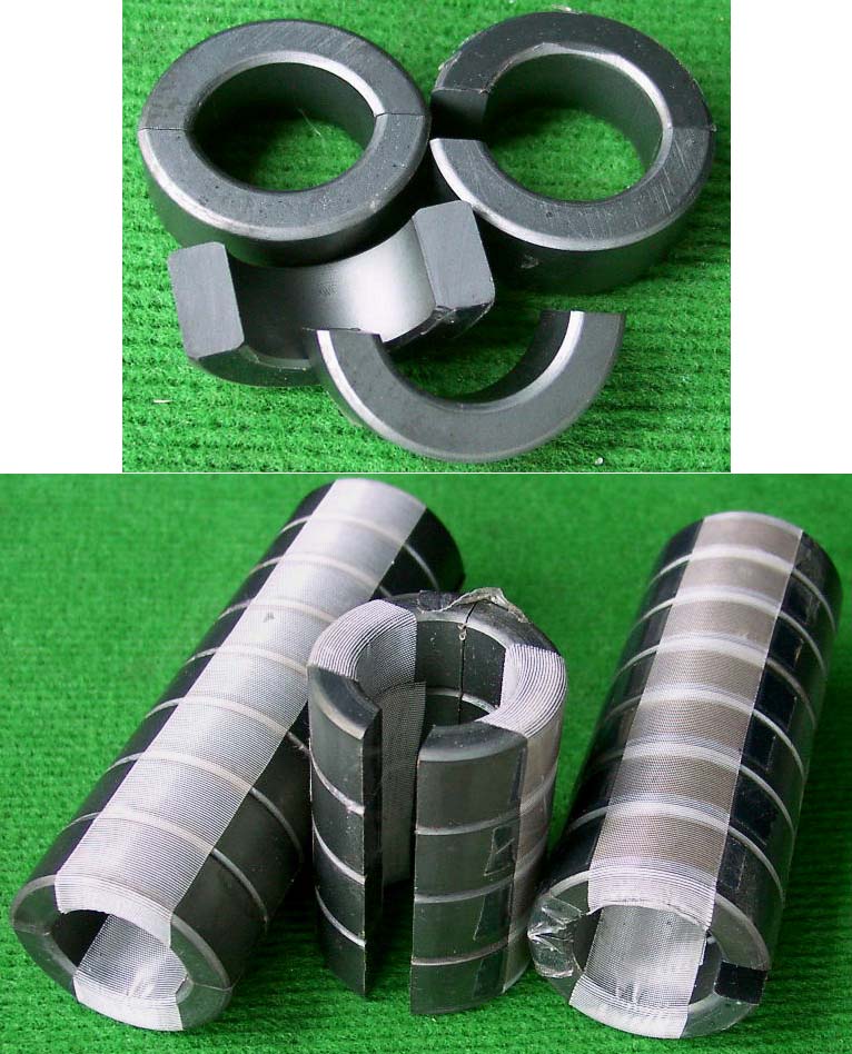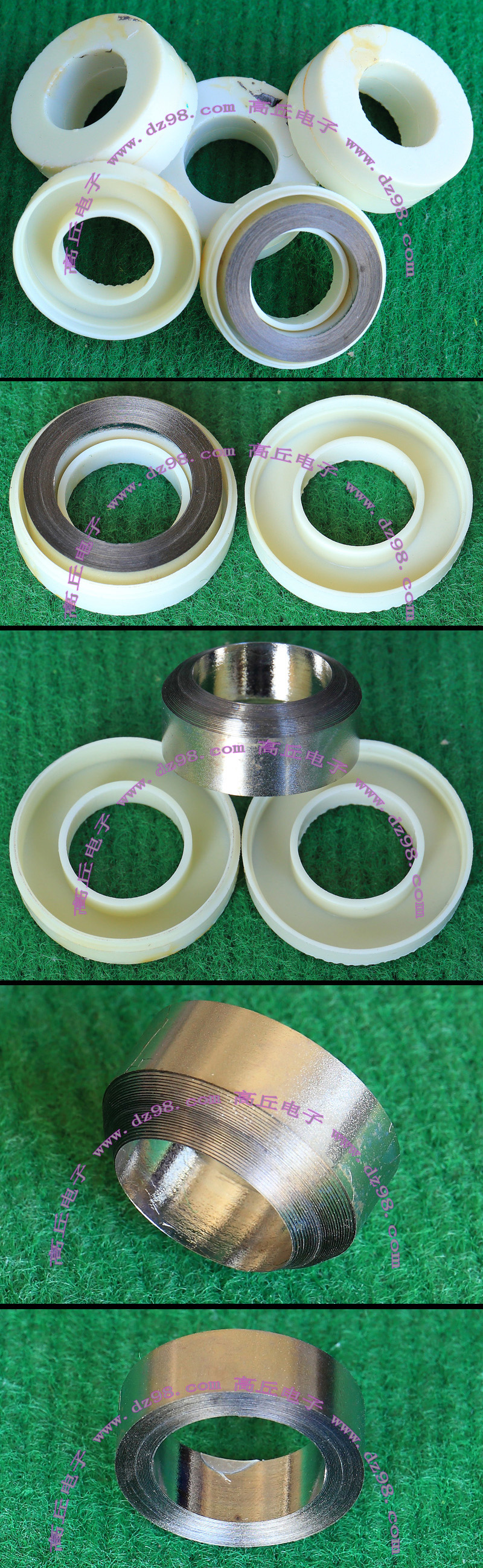 从韩国产通信设备用直流电源变换器拆下,新型磁芯材料,性能优越,直接代替价格昂贵的含镍环形磁芯,内部磁芯材料用金属薄带圈绕成型,金属薄带特性又硬又脆(厚度仅0.02mm),内部结构见 |