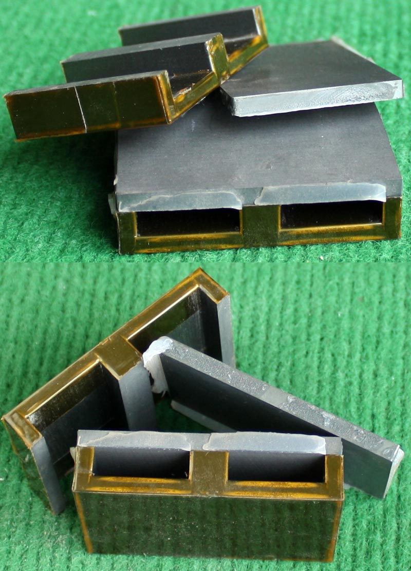 拆机件 | 从进口开关电源拆下,材料牌号3C85,中间舌直径16.22mm,合并后外框49mm x 44.5mm,中间没有气隙。 | 单价2.8元 。 |