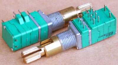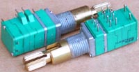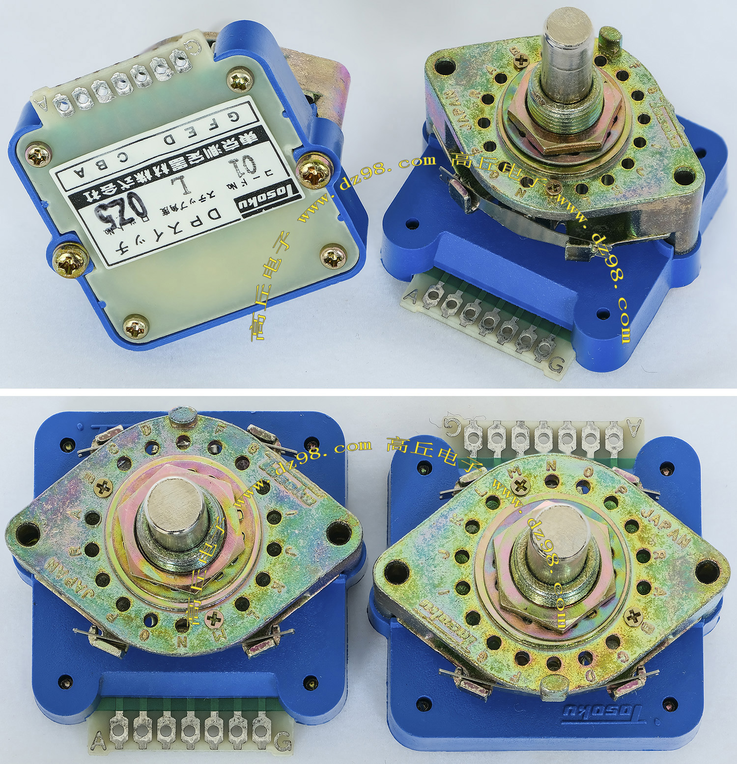 全新品,国外电子企业用后余货,厂牌ALPS,旋扭柄按一下短,再按一下长,旋转步进手感结构,转动时使各引脚实现通断功能(连续旋转=连续的一通一断),内部结构请看下图左边这个。 |
