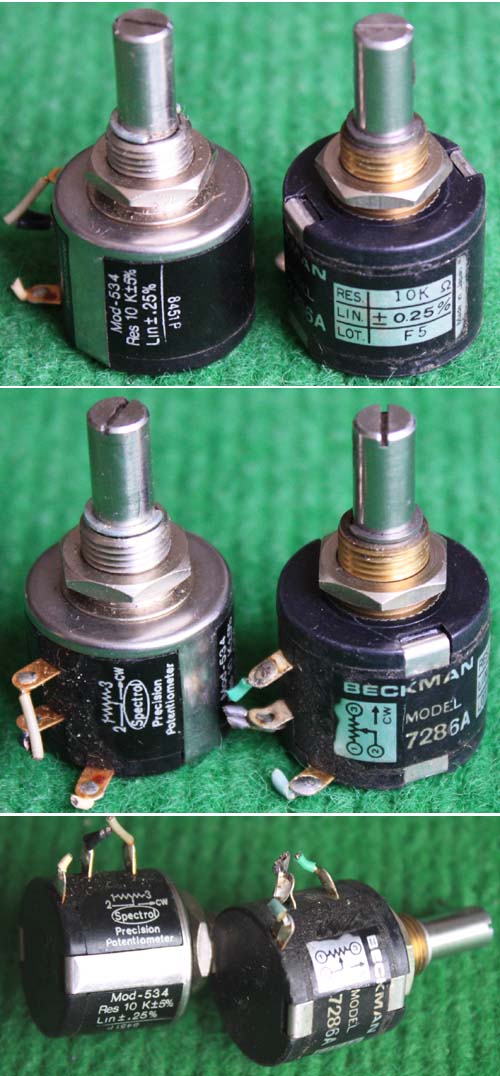POTENTIOMETER 10HP-10 10K欧姆精密多圈电位器 ,拆机件,每只带10进记数旋纽,每4只连在一张铝合金板上,由于旋纽用超小内六角扳手装的,没有工具拆不下,就连板卖了。 |