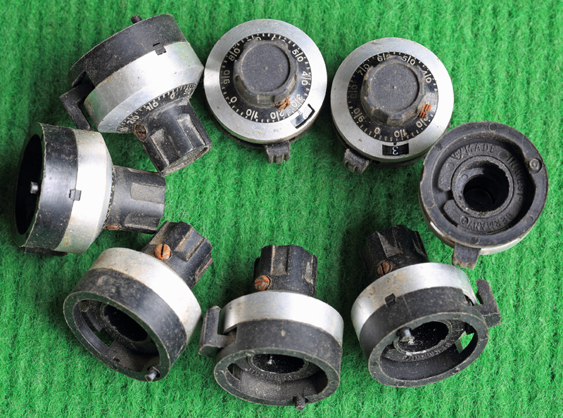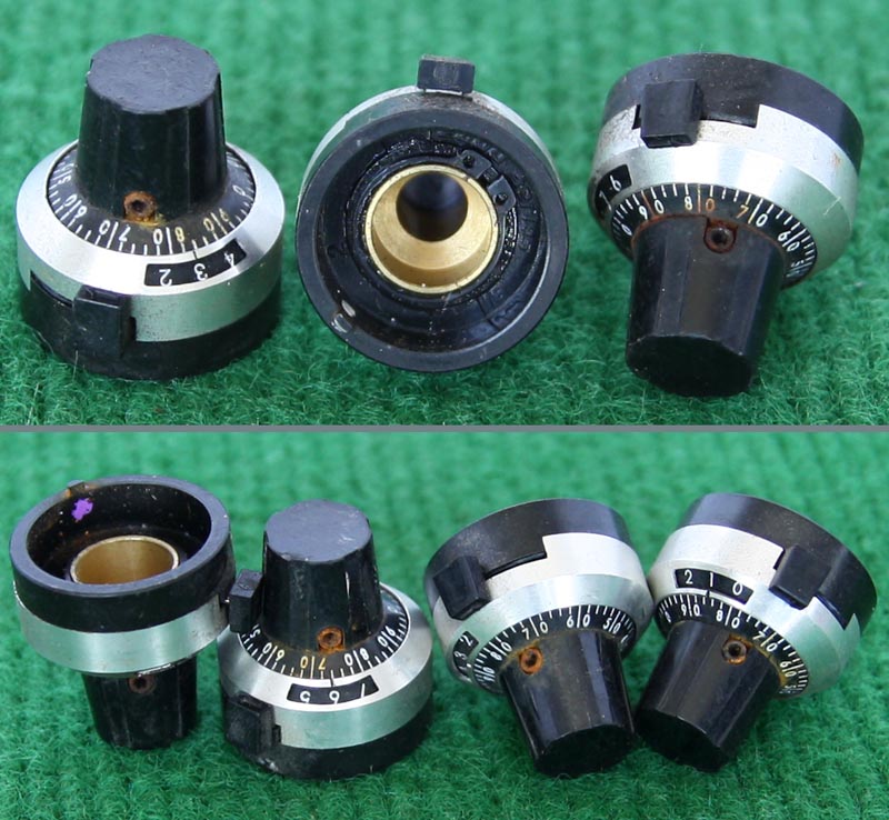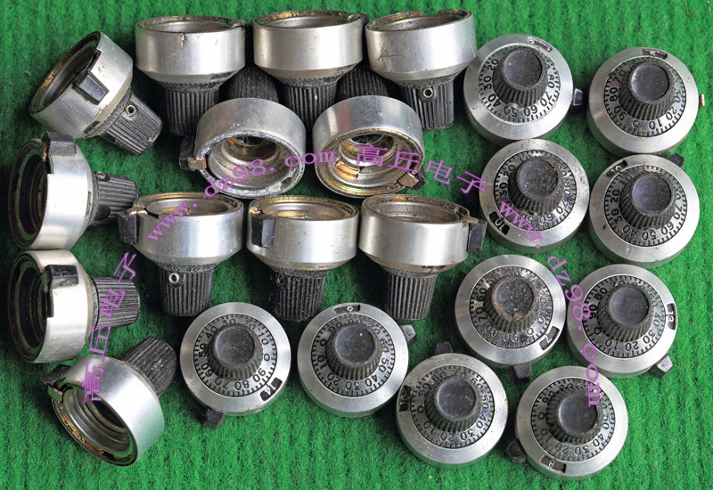 | 配合轴柄6毫米多圈精密十进机械读数显示电位器旋钮BKA161 | 从进口仪器拆下,原来和本网页商品编号BKA160配合使的。外观 约7-8成新,黄铜芯,铝外圈,胶木刻数旋头,每只重量约14克。 | 7成新单价10元。 8成新单价14元。 |