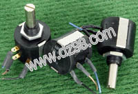 轴柄直径6毫米,轴柄按下/放开,两只引脚接通/断开;旋转轴柄,每步进一次,3只引脚的开关方式为;全通/全断开。转动时轴柄手感为步进停顿,连续旋转=连续开/关,内部结构请看图