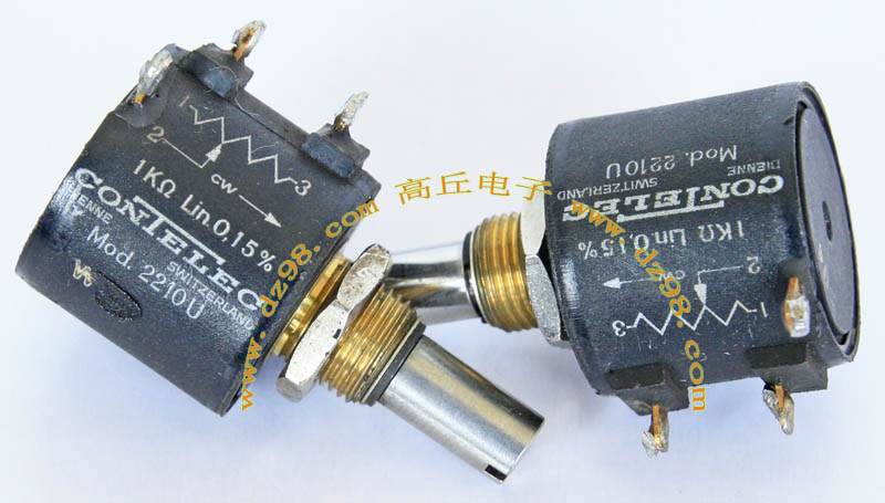 进口原装拆机,外观6成新,厂牌:CONTELEC,镀金焊接片,电阻1K欧姆,LIN +-0.15%。轴柄直径6.35毫米。 |