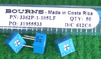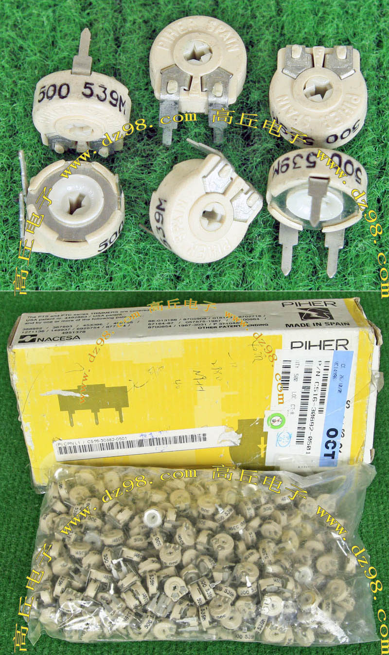 高精密度多圈微调电位器,全新件,方形封装,顶上调节式。 |