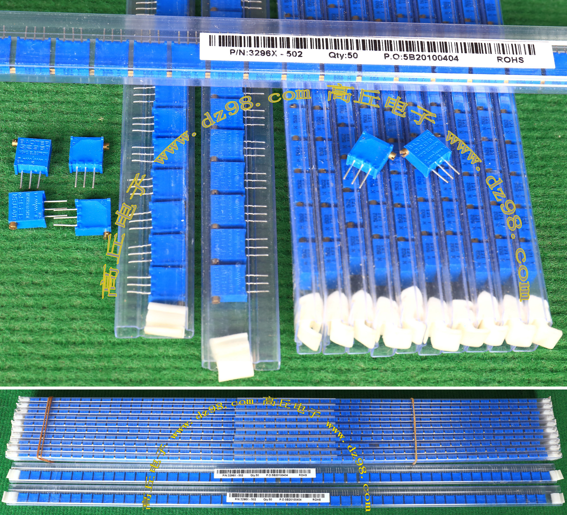 | 50欧姆多圈微调电位器BKA88 | 高精密度多圈微调电位器,拆机件,方形封装,顶上调节式。 | 每100只=50元。 |