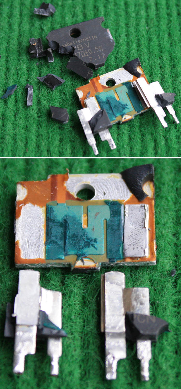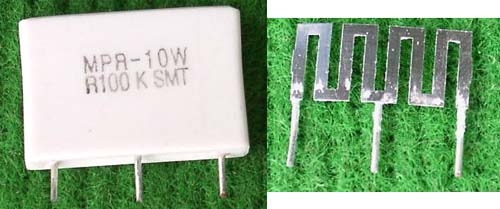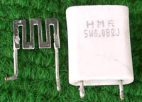 | 80毫欧功率电阻BKB107 | 检流用毫欧电阻, 拆机件,右图是敲掉陶瓷的内部结构,电阻值0.08欧姆(80毫欧)。 | 每100只=30元。 |