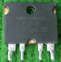 检流用毫欧电阻,拆机件,电阻值0.075欧姆(75毫欧)。 功率5W。 |