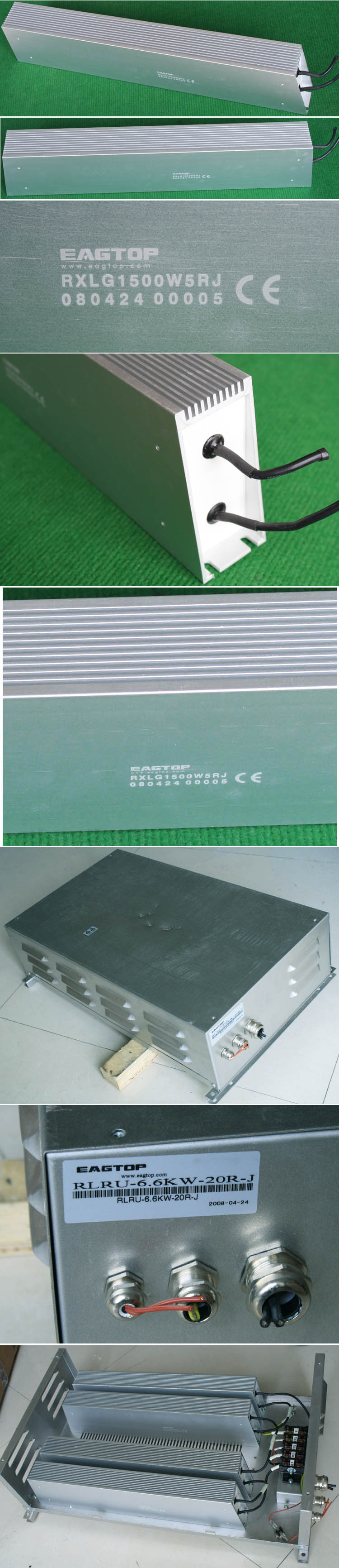 拆机件,从进口全新备件设备拆下,电阻外观9成新以上,厂牌:EAGTOP,型号:RXLG1500W18R3J,电阻18欧姆,功率1500W,电阻未通电用过,引线长度约6厘米。 尺寸:1485x107x50毫米,重量约4300克,全铝合金外壳,陶瓷填充内置电阻。 | 单价230元。 |