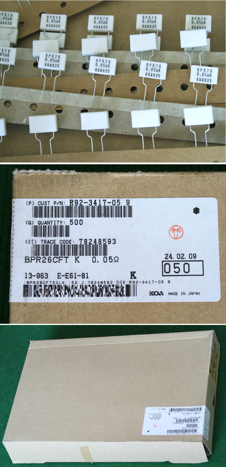 | 全新日本原装0.05欧姆2W功率电阻BKB287 | 本商品为日本KENWOOD上海工厂从日本采购用来制造车载音响设备的用后余货,标记0.05欧姆,电阻值50毫欧,功率2W。产地:日本,每盒包装数量500只。 | 每100只=32元。 |