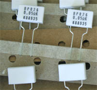 | BPR55 0.05+0.05欧姆 5W+5W 串联0.1欧姆 铜脚无感陶瓷电阻BKB321 | 全新原装,外形尺寸;26x5.1x17毫米,重量约5.6克,脚距;10-10-10毫米,铜引脚,陶瓷外壳,白水泥罐装,两只0.05欧姆无感结构电阻片,并联可当0.025欧姆/10W,接两端引脚是0.1欧姆/10W。 | 每100只=60元。 |