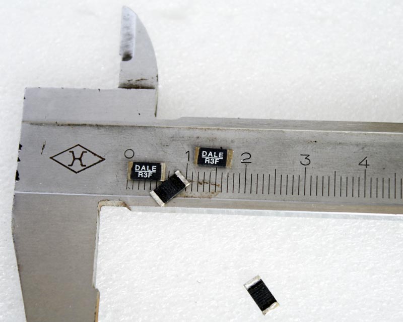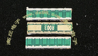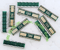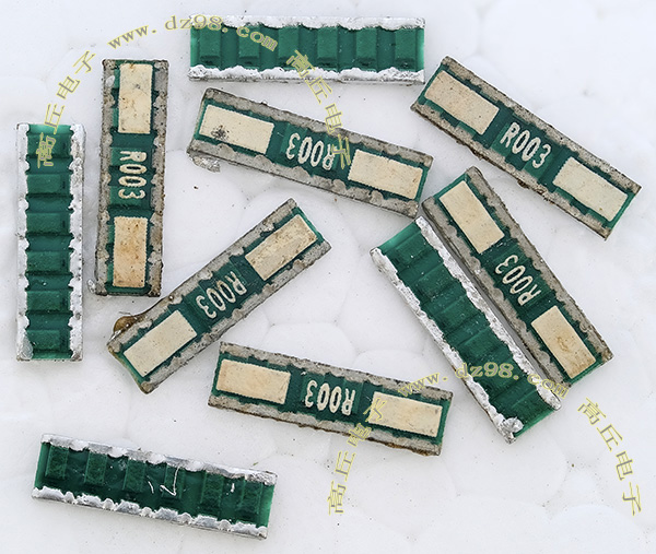 | 3毫欧 R003 电流采样电阻 贴片电阻BKB334 | 进口电源拆机(50A输出电流用3片),尺寸;7.6x2.1x0.5毫米。 |