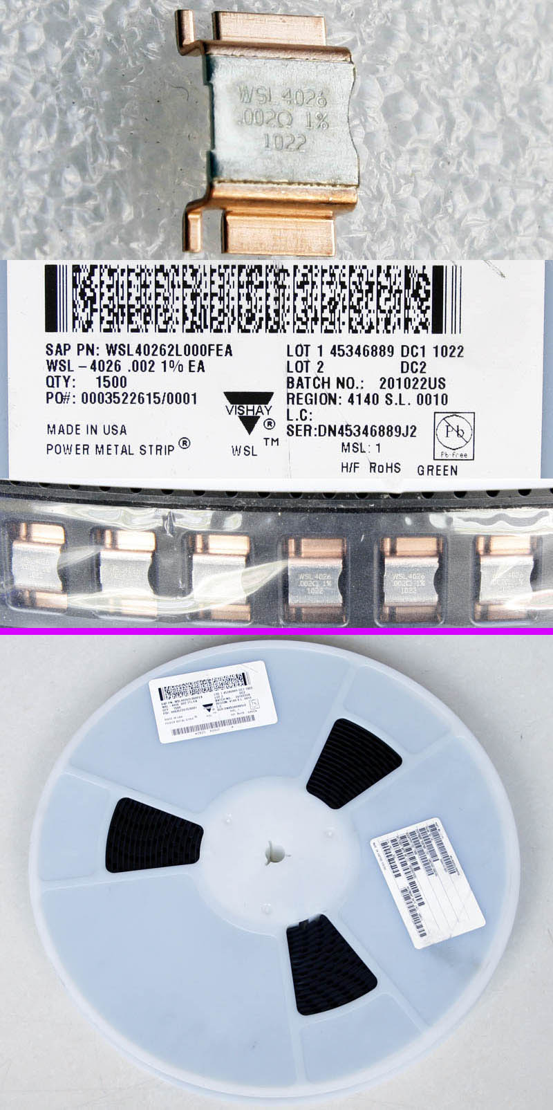 | VISHAY WSL-4026 0.002欧姆 1%精度贴片电阻BKB304 | 全新,实物看图片。贴片封装,电流可达50A,带采样端。PDF文件。 | 每只6元。 |