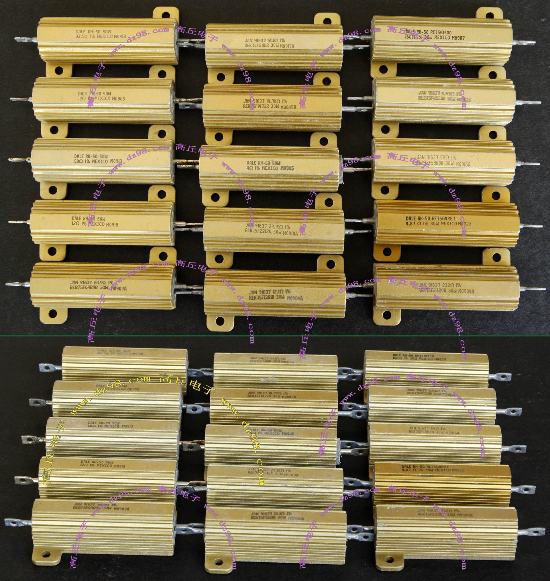 厂家生产多余尾货,外观大概和拆机件差不多,约8成新,电阻是新的没有用过的,电阻和壳体标称数值一样(二手用过的电阻会变),两端引脚镀层还没有加工好,需要自己打磨镀锡才能焊接。 厂牌:有写DALE也有JAN,型号;有写RH-50也有写91637,精度1%,功率有30W和50W外形一样,不挑厂牌、型号、功率、电阻数值混装出售,电阻很杂很多规格,可以做到每50只都不一样电阻混装,实际品种估计起码有300种。 |