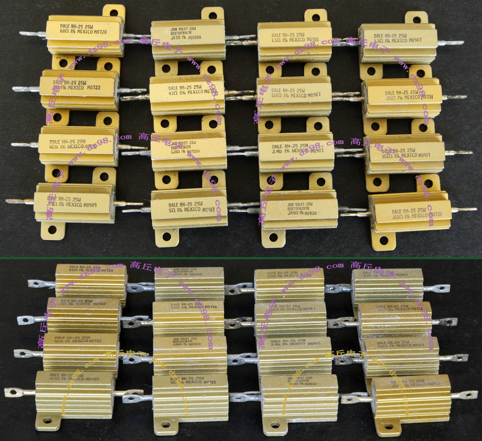 厂家生产多余尾货,外观大概和拆机件差不多,约8成新,电阻是新的没有用过的,电阻和壳体标称数值一样(二手用过的电阻会变),两端引脚镀层还没有加工好,需要自己打磨镀锡才能焊接。 厂牌:有写DALE也有JAN,型号;有写RH-25也有写91637,精度1%,功率有20W和25W外形一样,不挑厂牌、型号、功率、电阻数值混装出售,电阻很杂很多规格,可以做到每50只都不一样电阻混装,实际品种估计起码有200种。 |