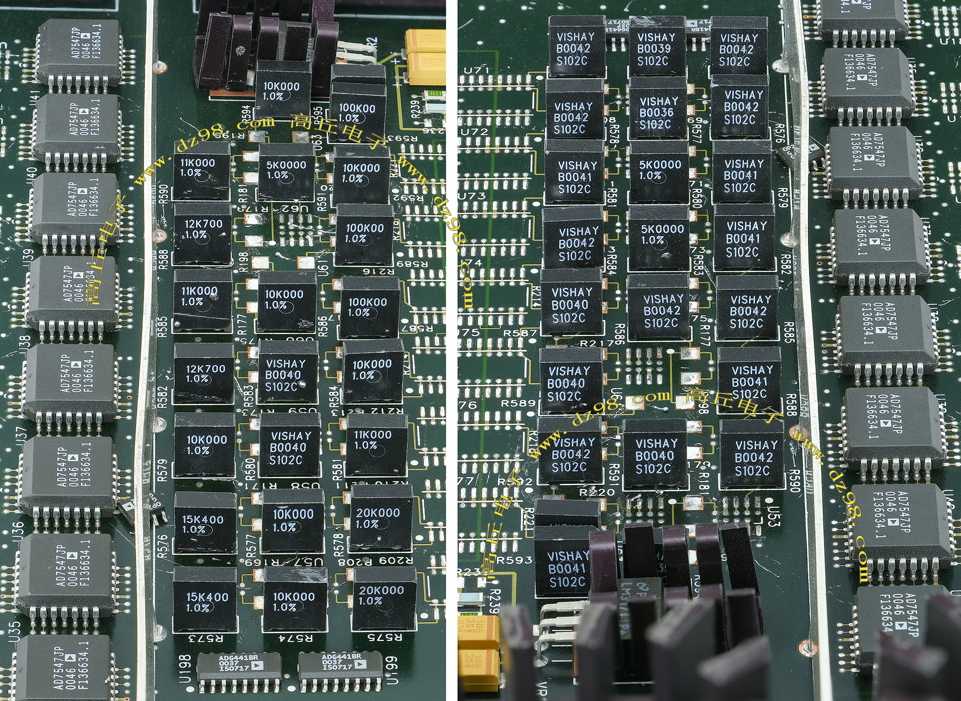 进口拆机,板上有高精密电阻,精度0.01%。立式10K数量10只、立式20K数量9只、立式30K数量3只、立式50K数量2只,卧式2欧姆、20欧姆、200欧姆、2K欧、20K欧、200K欧、数量各1只,卧式10欧姆、100欧姆、1K欧、10K欧、100K欧、1000K欧、10000K欧数量各1只。板上全部集成电路、光耦、等共计100只,99只集成电路镀金插座。 |