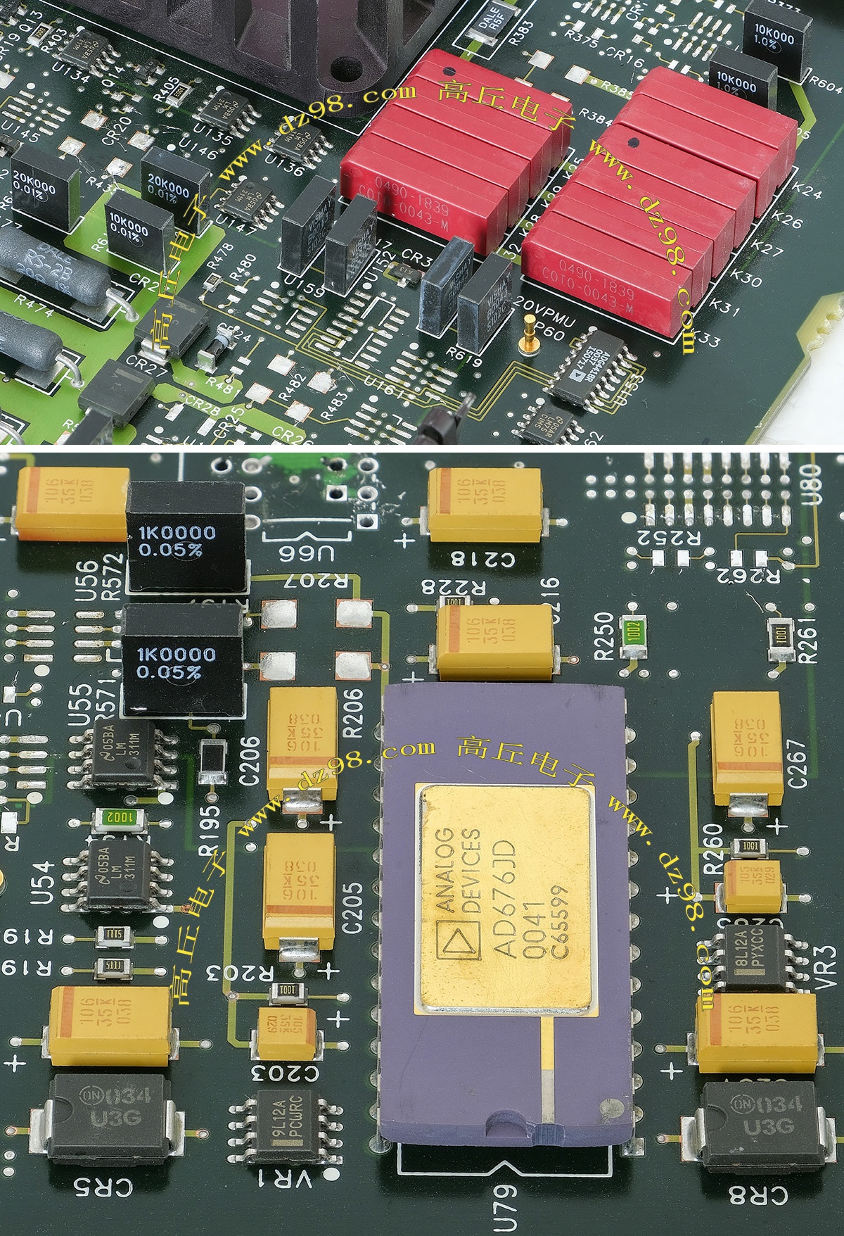 进口拆机,实物参照图片,板上约有53只高精度电阻和37只干簧继电器,ADG441BR数量14只,及其它元件,供拆件用,1只AD676JD,整板尺寸;355x318x25毫米,重量约850克。 |