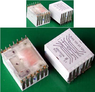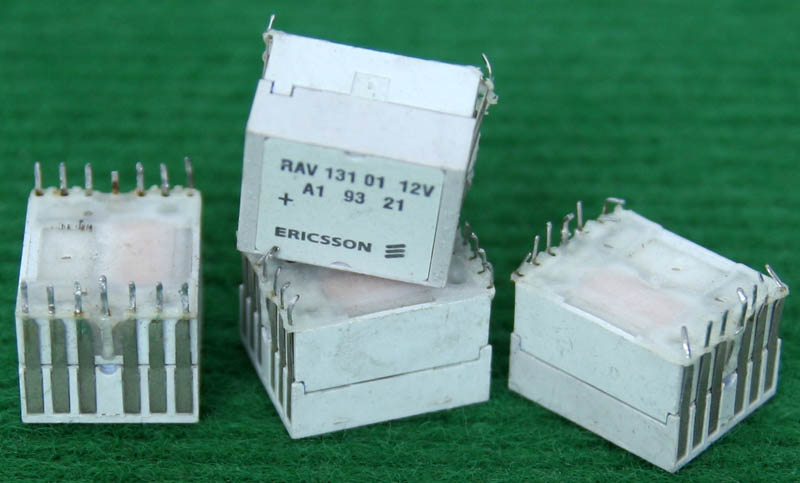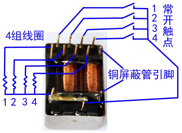 拆机件 | 拆机件,外观约8成新,插座拔下,引脚未上锡,此继电器由4根干簧管和4只线圈组成,4只线圈能独立控制,每根干簧管外面介于线圈内装有一个铜屏蔽套管,全部引脚镀金处理。外形尺寸:17.6x12.6x9.5毫米。 每只线圈电压2.5-3.5V,2.5V工作电流19mA,3V工作电流22mA,3.5V工作电流26mA。 |