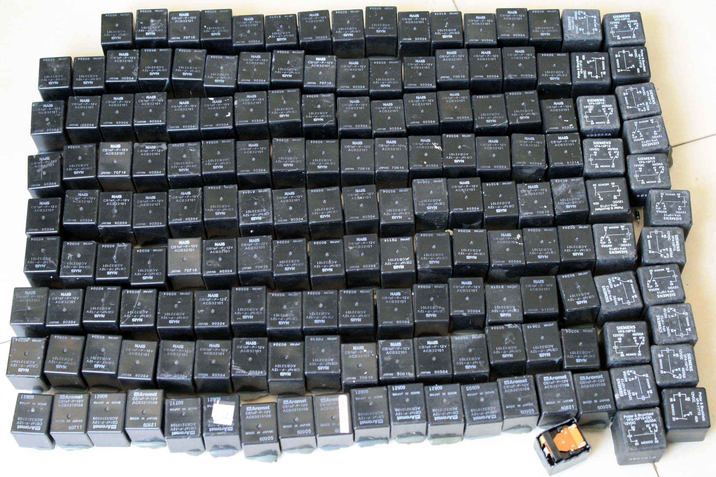 拆机件 | 拆机件,外观约9成新,外观如图。每只继电器外形尺寸:30.5x15x11.5毫米。每板装继电器15只。线圈电压12V。 |