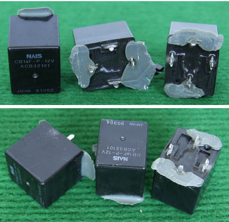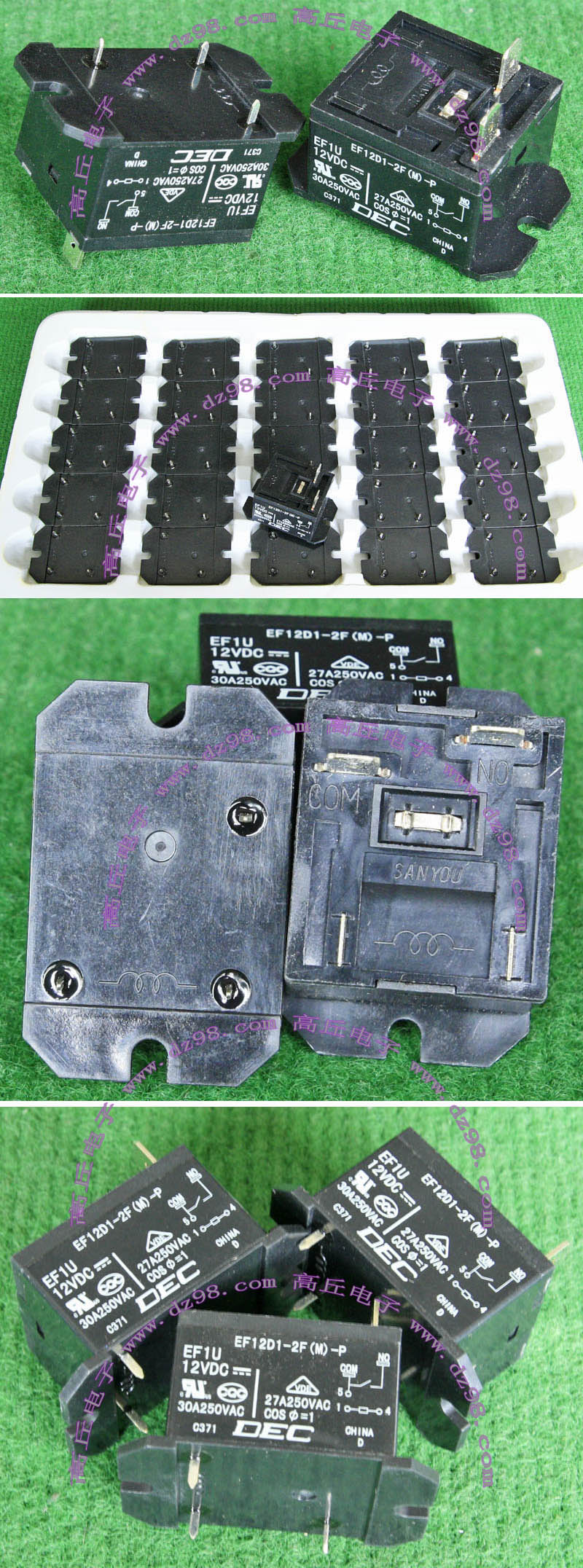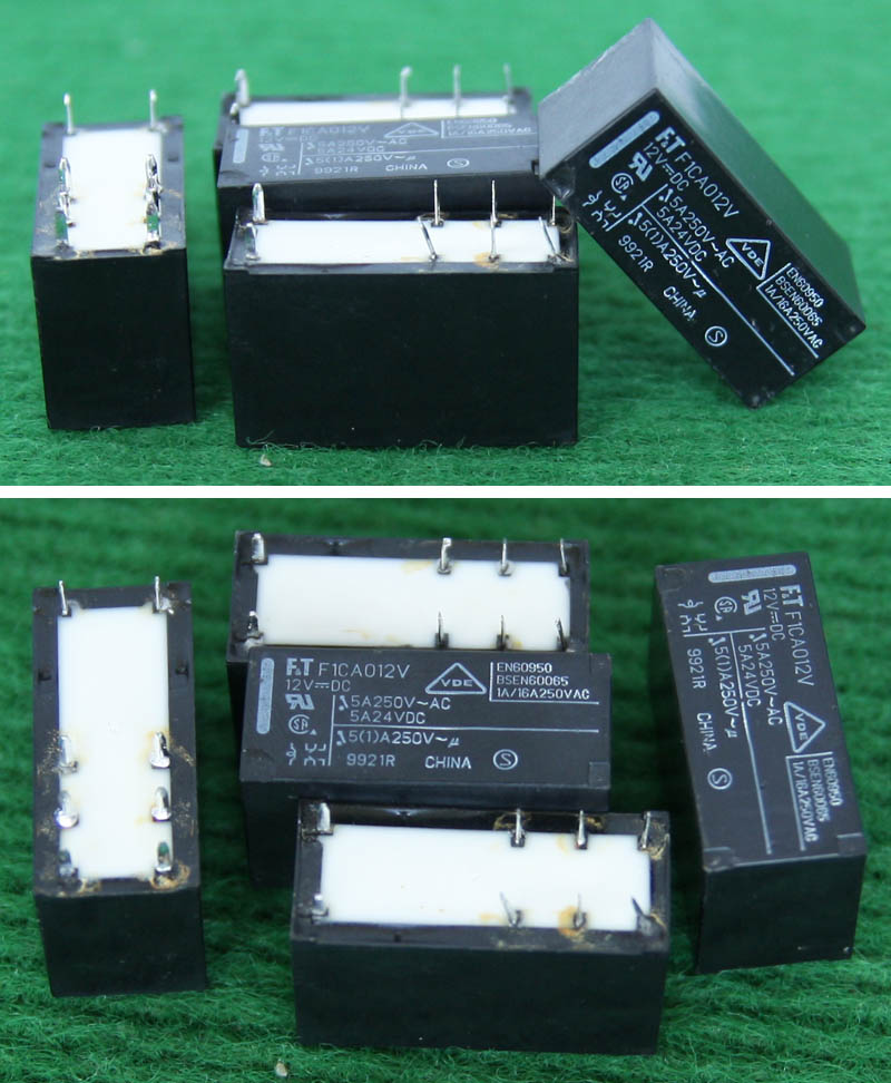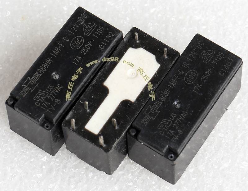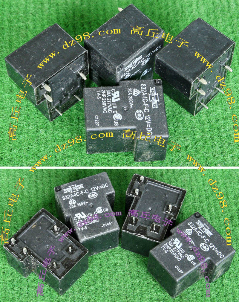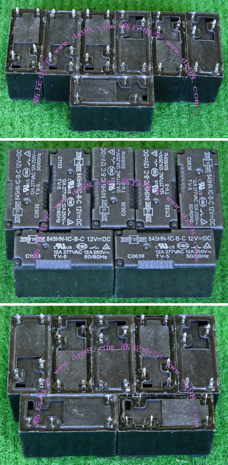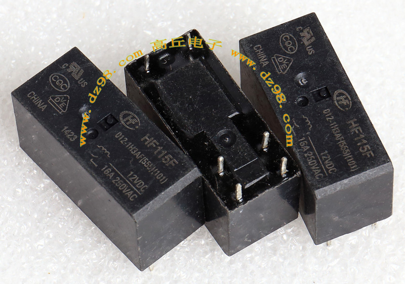 拆机件 | 拆机件,外观约7成新,电压12V,有三种牌子(详见放大图片),引脚统一,一组常开常闭触点。外形尺寸:26毫米x26毫米x高27毫米。外形尺寸:26.5毫米x22.5毫米x高27毫米。 |