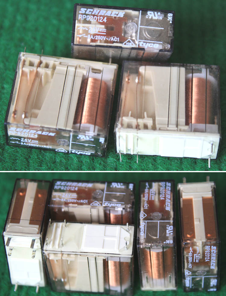 拆机件 | 线圈电压24VDC,2组常开常闭触点,电压AC250V,电流5A,外形尺寸:29毫米x12.7毫米x高25.5毫米(连焊接部分脚总高28.5毫米),每只重量约17克。 |