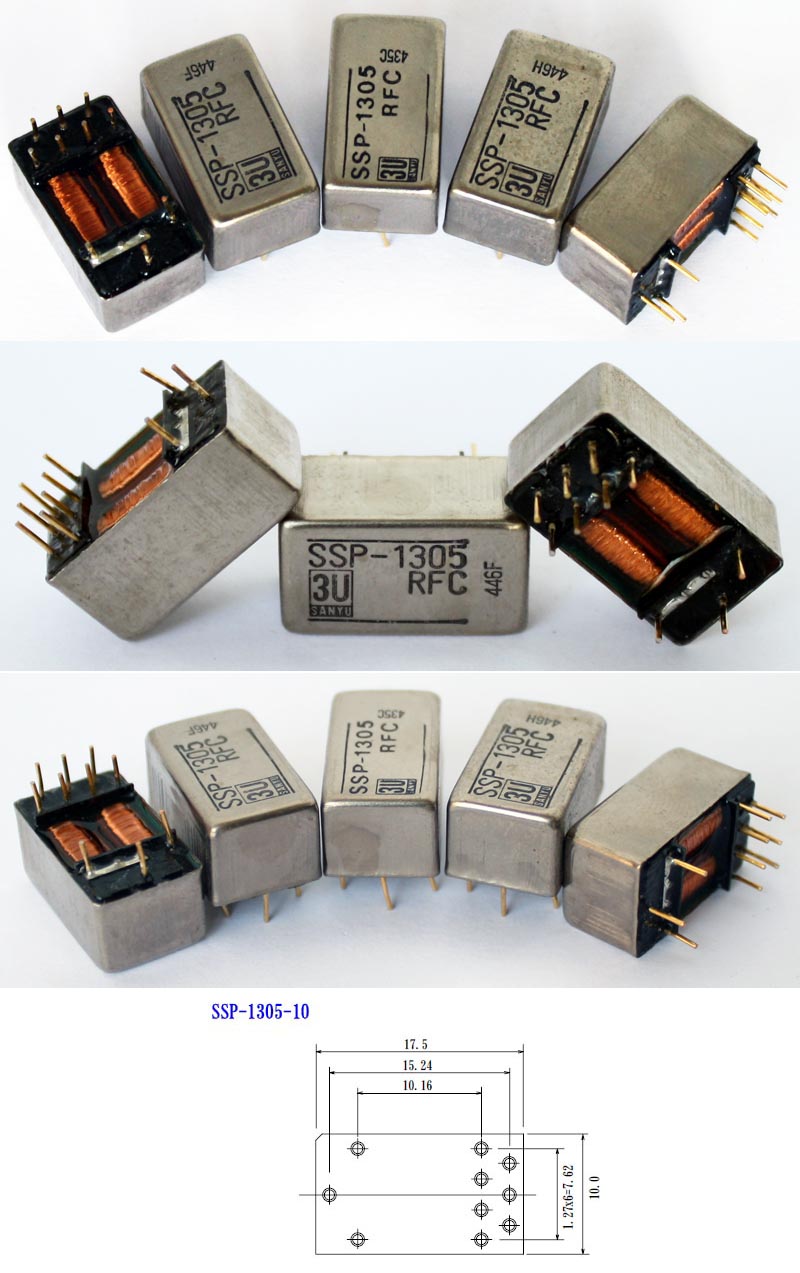 拆机件 | 拆机件,外观约8成新,插座拔下,引脚未上锡,此继电器由3根干簧管和3只线圈组成,3只线圈能独立控制,每根干簧管外面介于线圈内装有一个铜屏蔽套管,全部引脚镀金处理。外形尺寸:17.6x10.2x9.5毫米。 每只线圈电压2.5-3.5V,2.5V工作电流19mA,3V工作电流22mA,3.5V工作电流26mA。 |