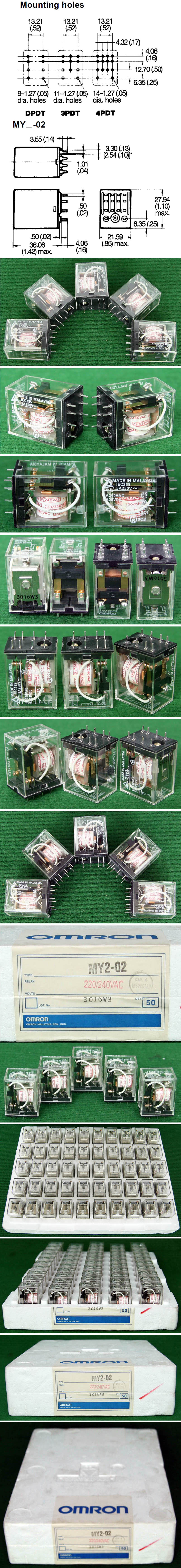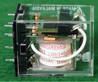 全新原装 | 全新原包装,每盒包装数量50只(重量约1677克),产地:MALAYSIA马来西亚,线圈电压220/240VAC,2组常开常闭触点,触点最高电压250VAC,触点最大电流5A,两路并联达10A,外形尺寸:27.5毫米x21毫米x高36毫米(连焊接部分脚总高39.6毫米),每只重量约32.6克。 | 单价11元。 |