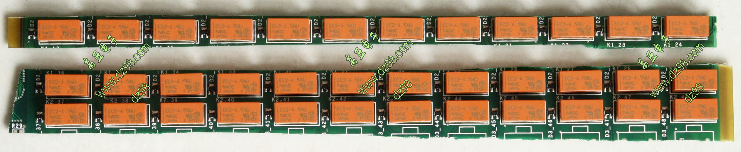 | 48只继电器带底座整板BLA179 | 拆机件 | 进口设备拆下,共48只继电器,7只带普通底座,20只带DIP16镀金插座(集成电路可插),21只带DIP14镀金插座(集成电路可插),整板外形尺寸;246x178x22毫米,重量约400克。 | 整板单价130元。 |