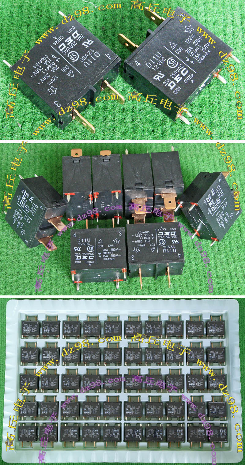 | DEC DI1U 12VDC 20A 250V空调继电器 继电器BLA154 | 全新 | 全新原装,每箱原装500只,实物看图。线圈电压直流12V,一组常开触点;电压250VAC,电流20A。重量约27.5克。 | 单价3元。 |