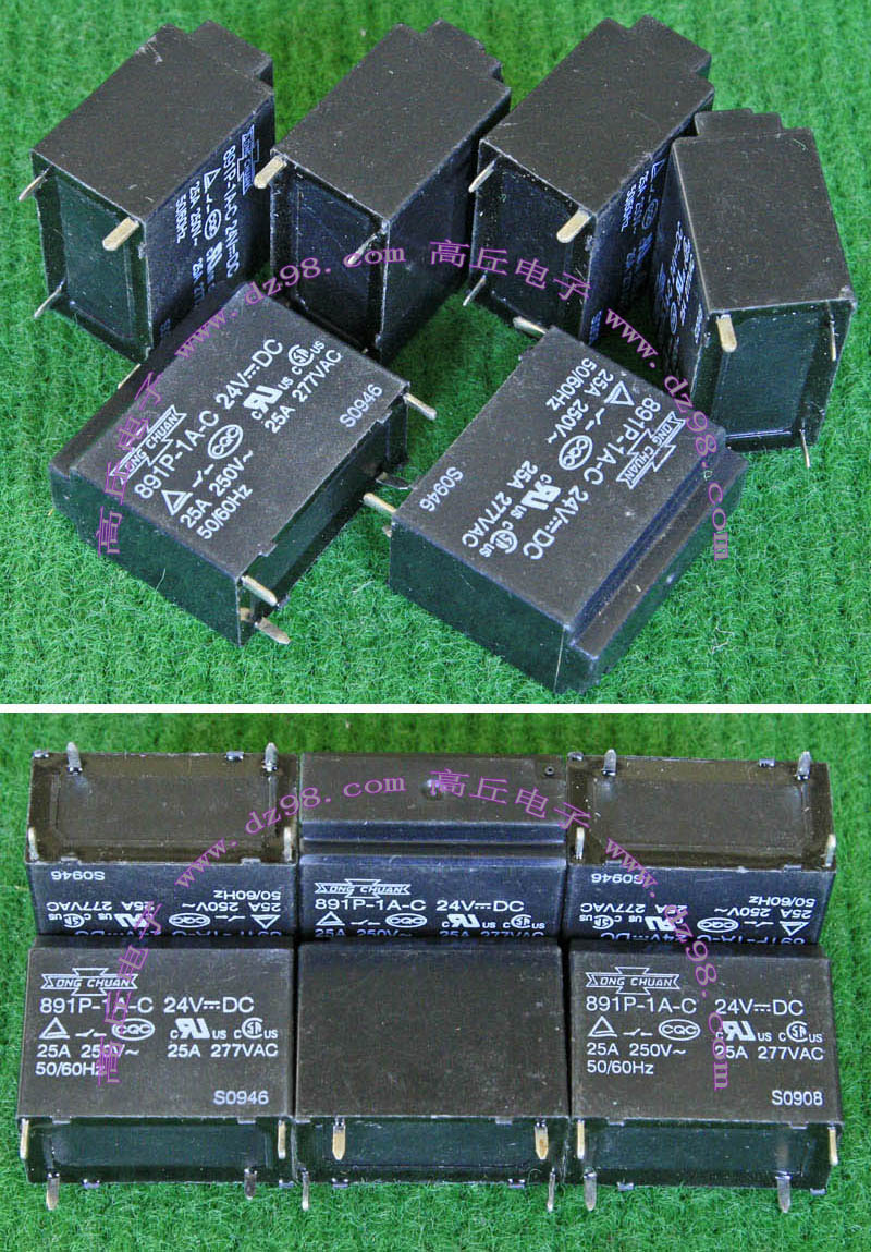 | SONG CHUAN 891P-1A-C 24VDC 277V 25A继电器BLA162 | 全新库存 | 全新库存,厂家已倒掉原来的包装,导致外观约8成新,当拆机件卖,线圈电压DC24V,1组常开触点,触点电压277VAC,触点电流25A,外形尺寸;30.2x15.6x26.5毫米,重量约20.8克。 | 单价3.5元。 |
