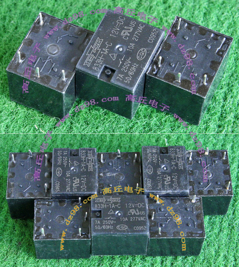 | SONG CHUAN 833H-1A-C 12VDC 277V 7-10A继电器BLA164 | 全新库存 | 全新库存,厂家已倒掉原来的包装,导致外观约8成新,当拆机件卖,线圈电压DC12V,1组常开触点,触点电压277VAC,触点电流7-10A,外形尺寸;19x15.5x15.2毫米,重量约8克。 | 单价1.3元。 |