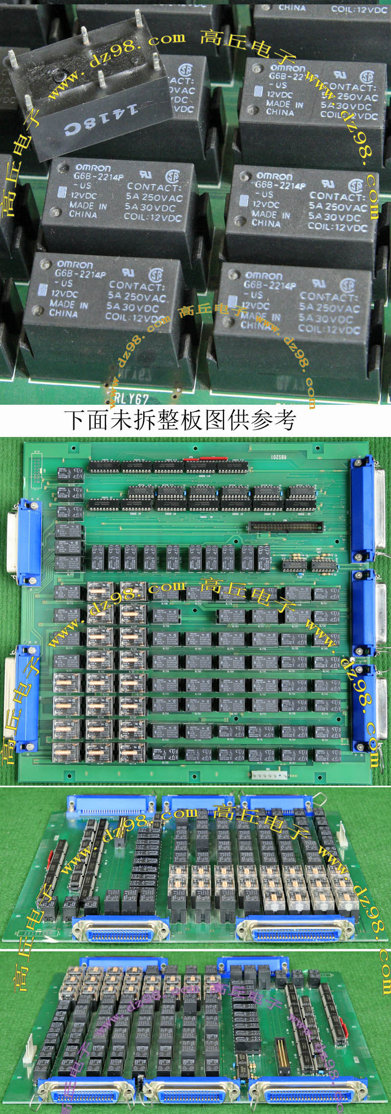 | OMRON G2R-1E 线圈12V 触点250V 16A 继电器拆机板BLA229 | 拆机件 | 进口设备拆下,实物参照图片,插座焊接在线路板上,继电器可拔下,32只继电器整板重量约940克。 |