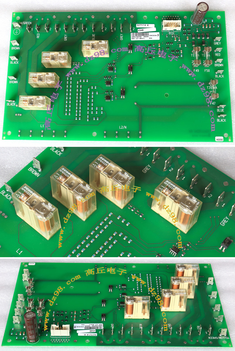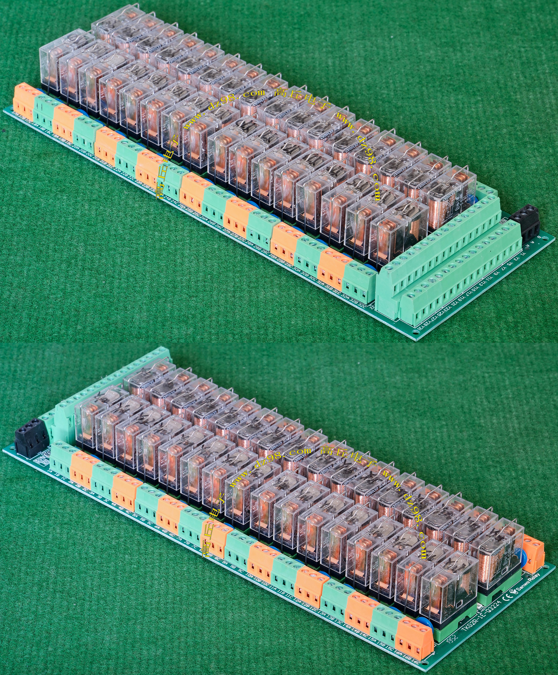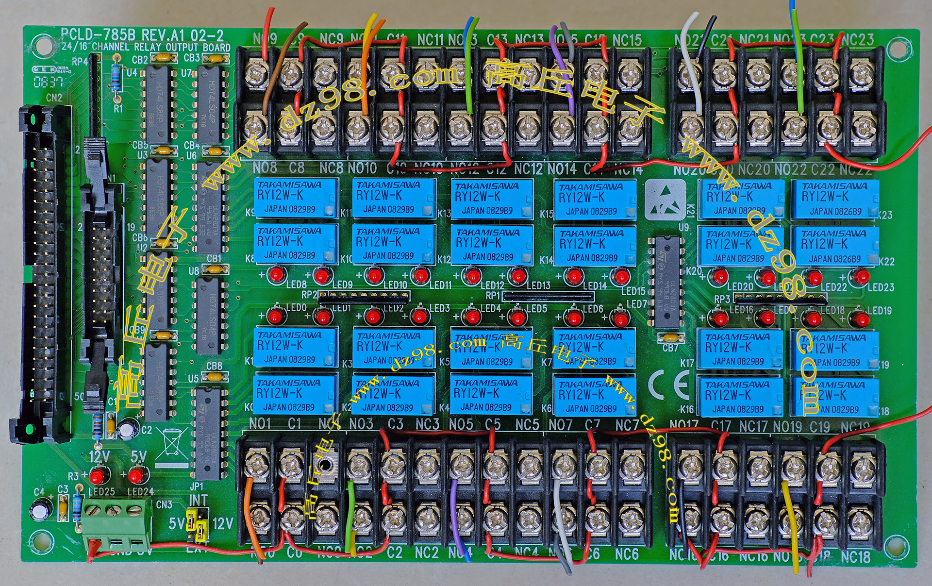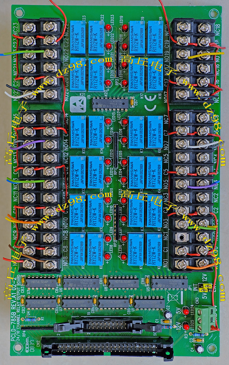 全新备件 | 实物请看图,全新备件,继电器型号:AZ755-1C-24DE(555),线圈电压DC24V,两组常开常闭触点,触点电压250VAC/30VDC,电流16A,已经将9只继电器焊到一张线路板上,并且还装上了吸收二极管和LED指示灯,不拆下单独卖继电器。 |