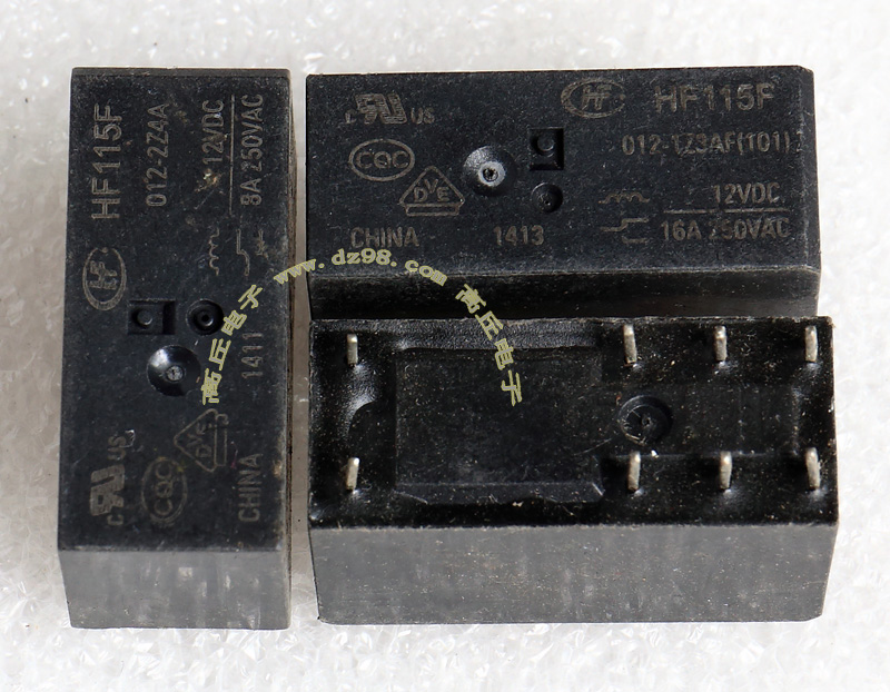 | HF115F 12VDC 250V 16A 8脚 继电器BLA189 | 拆机件 | 实物参照图片,外形尺寸;长29x宽12.6x高15.7毫米,重量约13.1克。 | 单价2.3元。 |