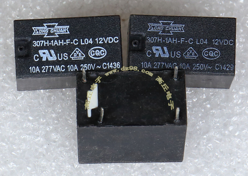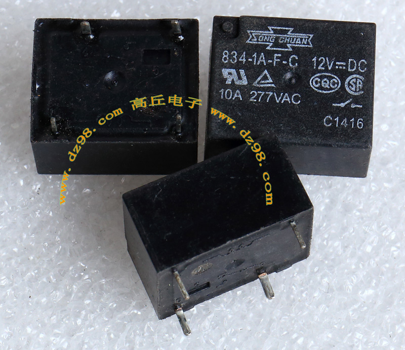 | SONG CHUAN 834-1A-F-C 12VDC 277V 10A继电器BLA215 | 拆机件 | 实物参照图片,外形尺寸;长18.5x宽15.2x高10.2毫米,重量约5.8克。 | 单价0.9元。 |