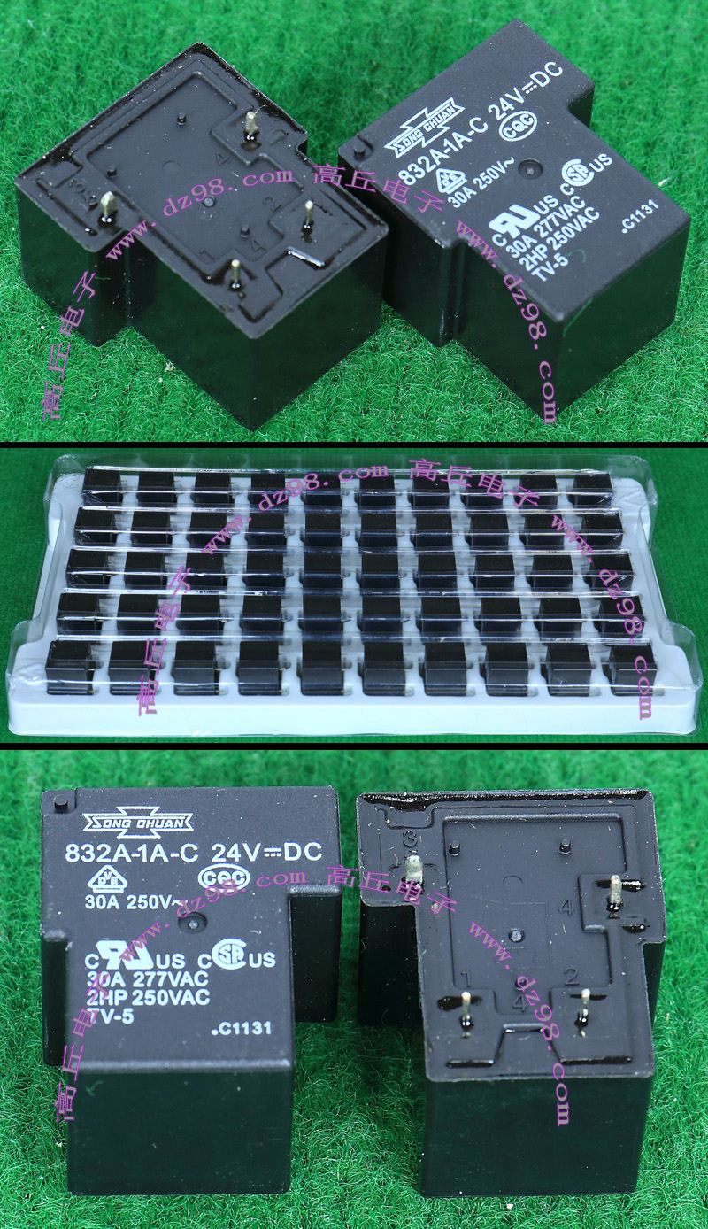 | SONG CHUAN 832A-1A-C 24VDC 250V 30A继电器BLA222 | 全新 | 实物参照图片,外形尺寸;长31.8x宽27x高19.7毫米,重量约25.7克。 | 单价4元。 |