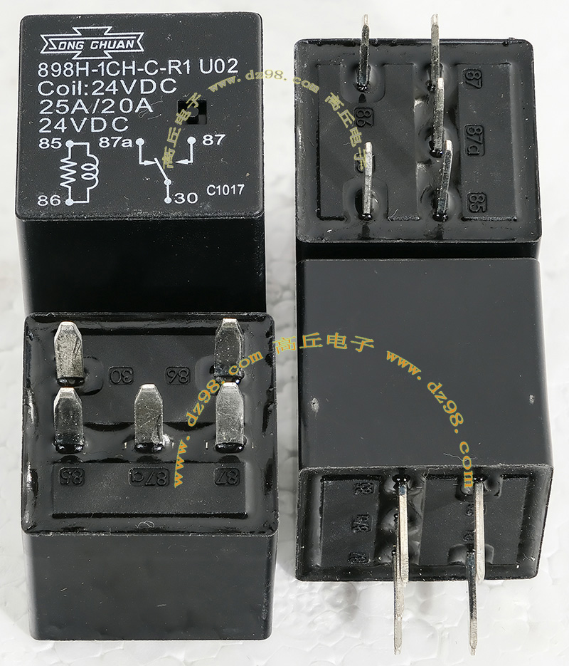 | SONG GHUAN 898H-1CH-C-R1U02 24VDC 25A/20A 继电器BLA227 | 全新原装 | 全新,实物参照图片,外形尺寸;25.8x25.8x高25毫米(连脚35.8毫米),重量约28克。 |
