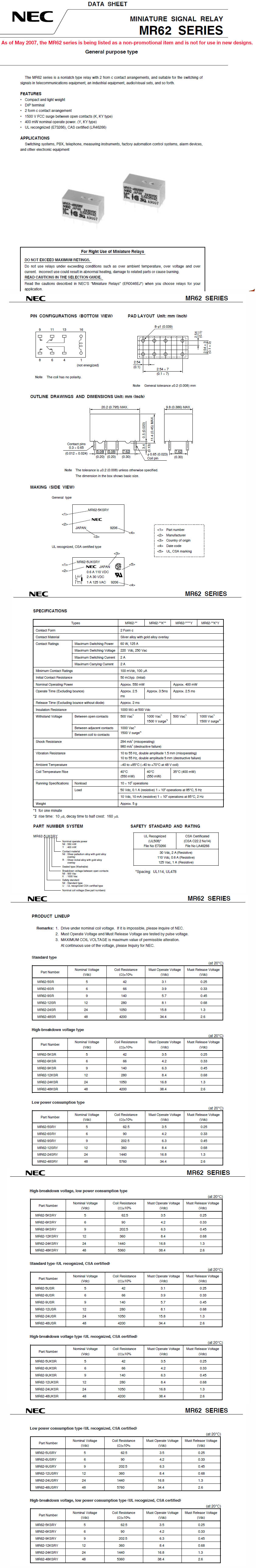 | NEC/MR62-12焊板式12V继电器BLA44 无货 |