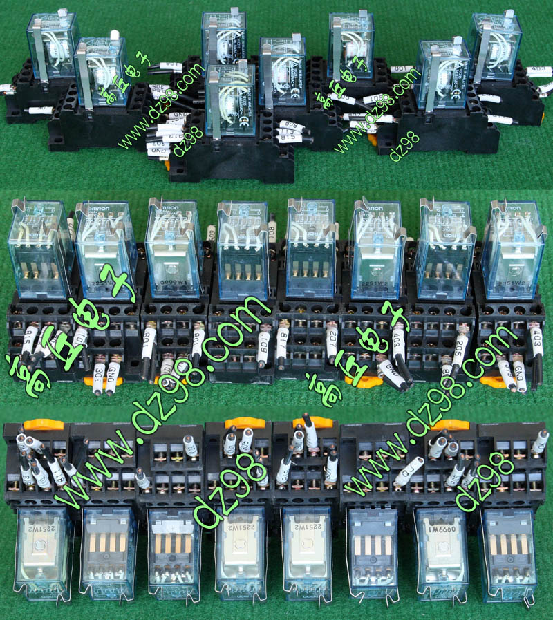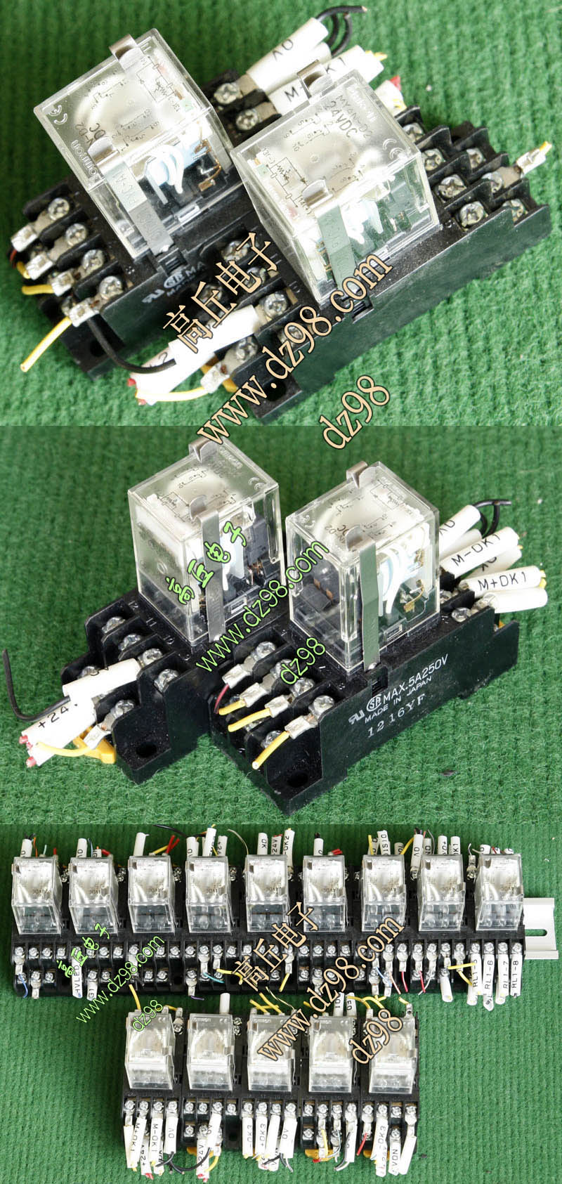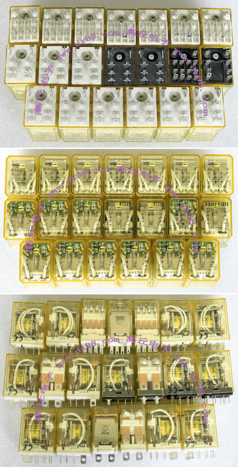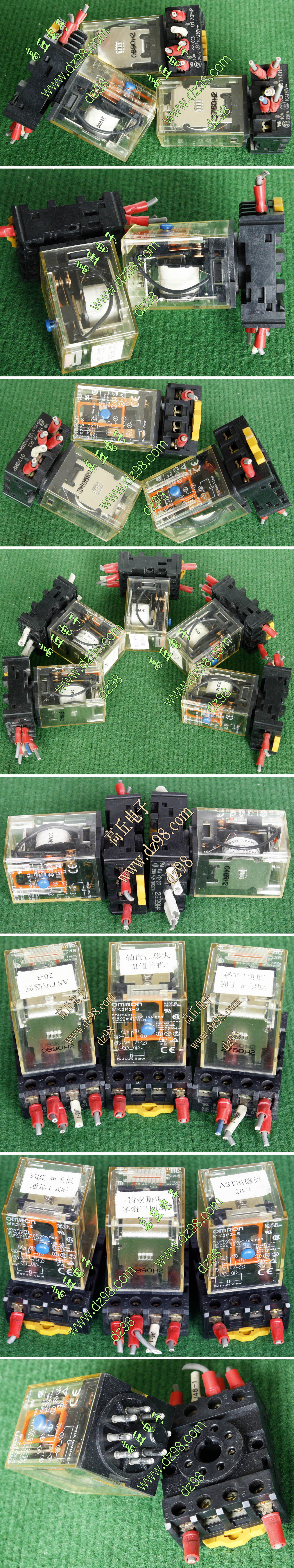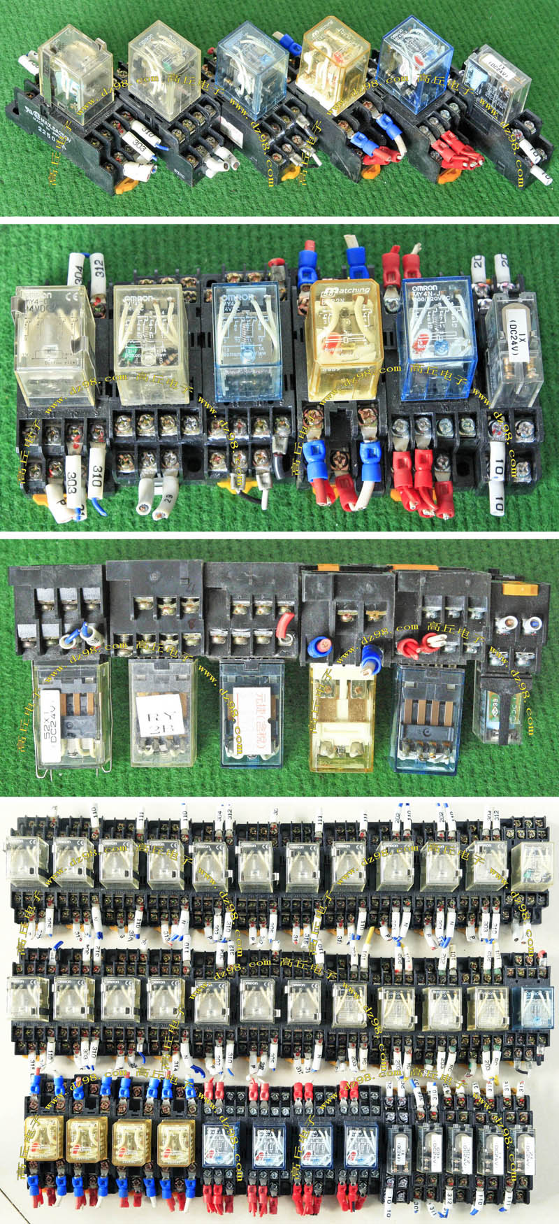 拆机品 | 拆机件,外观约9.5成新,厂牌:OMRON,实物看图,继电器是4组常开常闭触点,线圈电压DC24V。重量14只总重量约1320克。 |