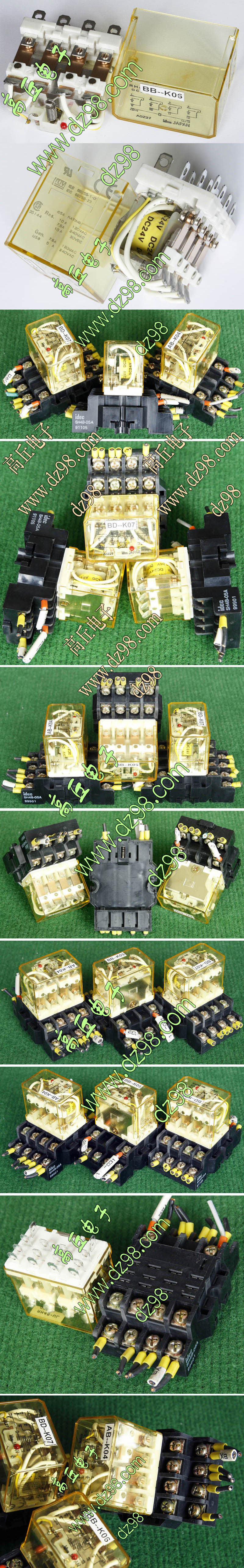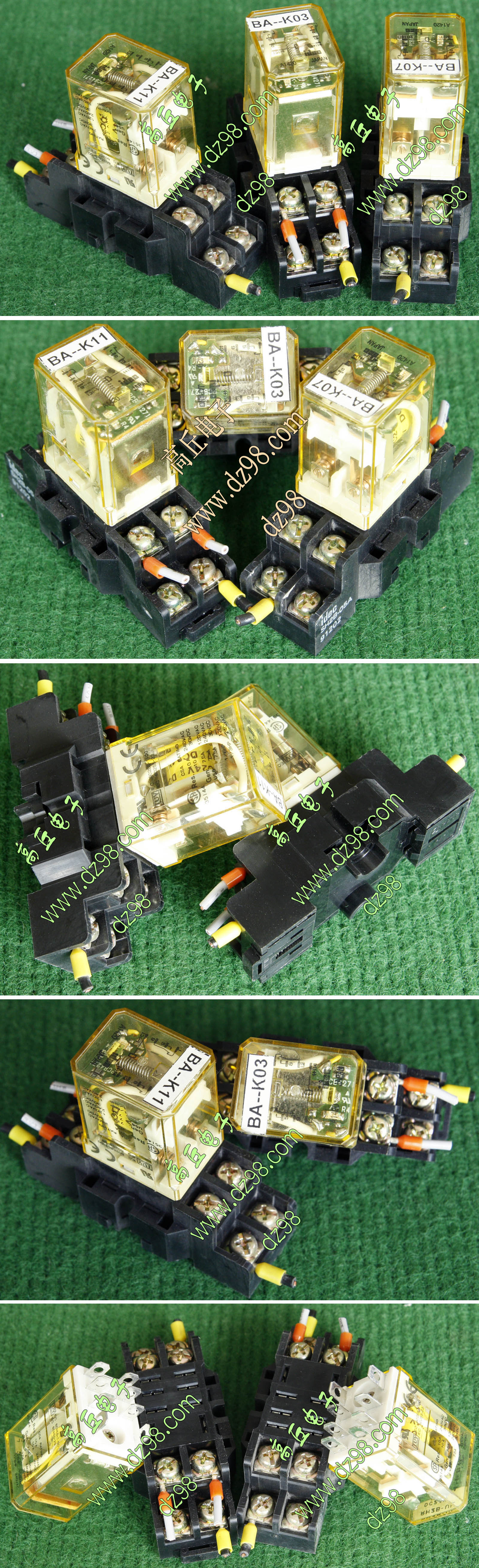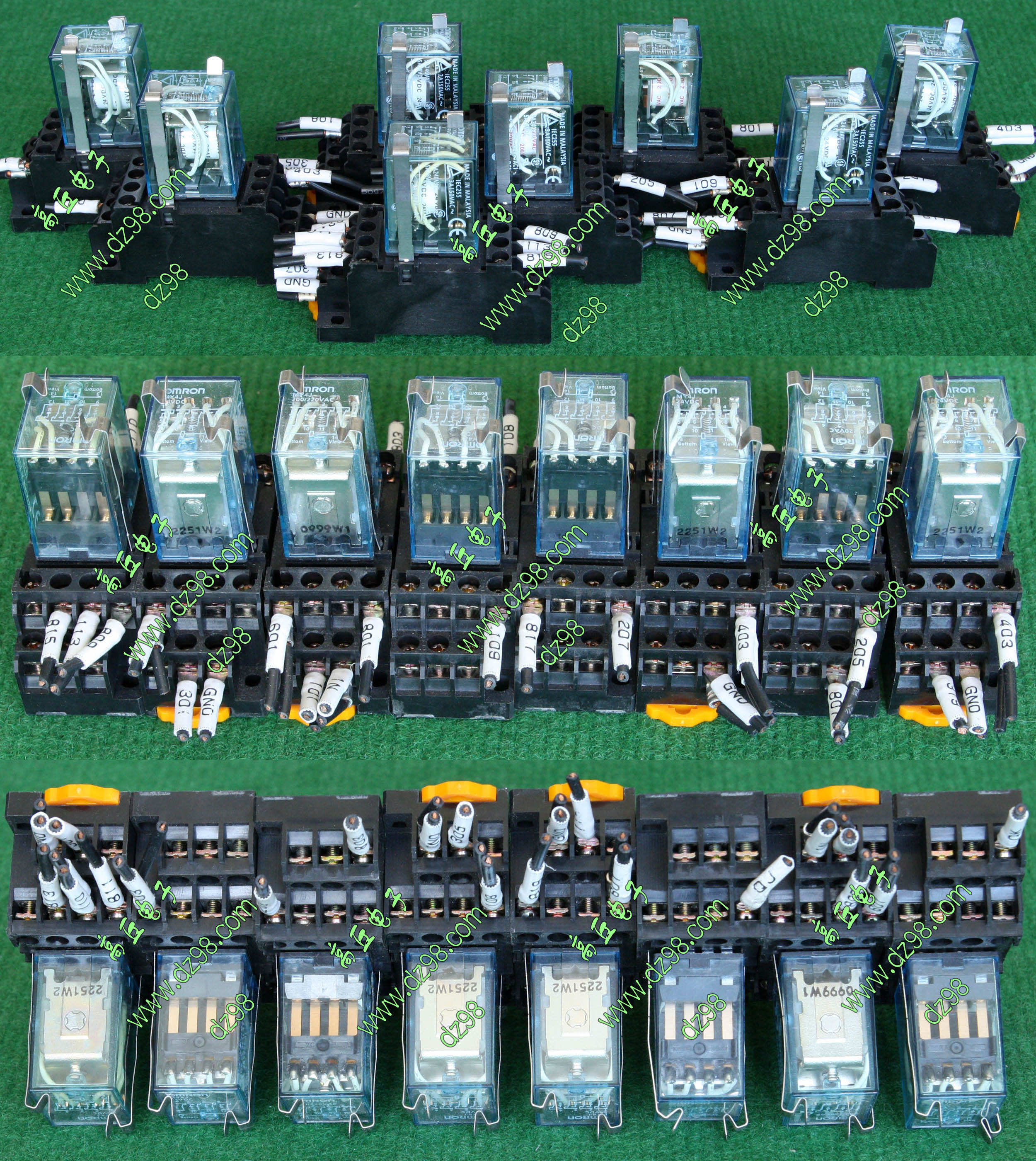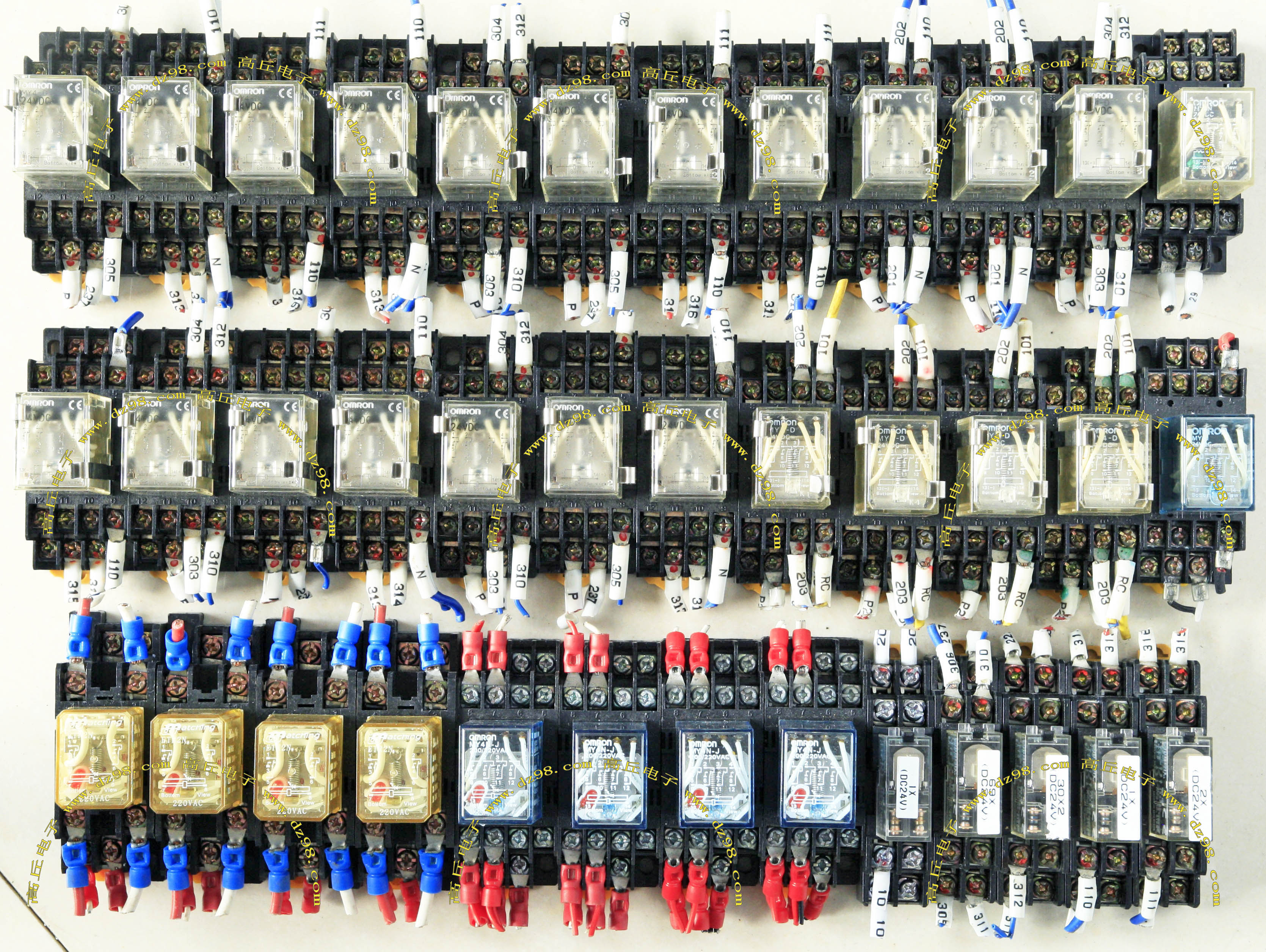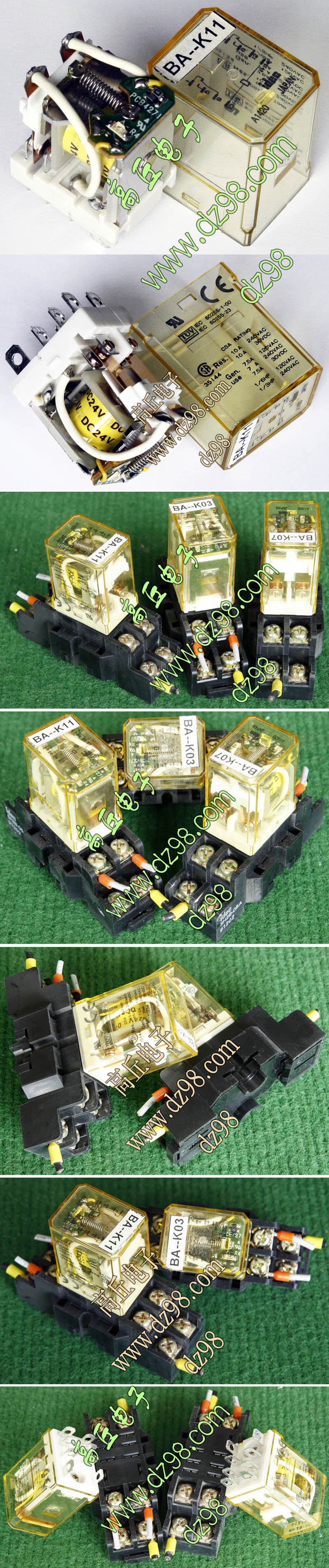 拆机品 | 拆机件,外观约9.5成新,厂牌:OMRON,实物看图,继电器是4组常开常闭触点,线圈电压DC24V。重量14只总重量约1320克。 |