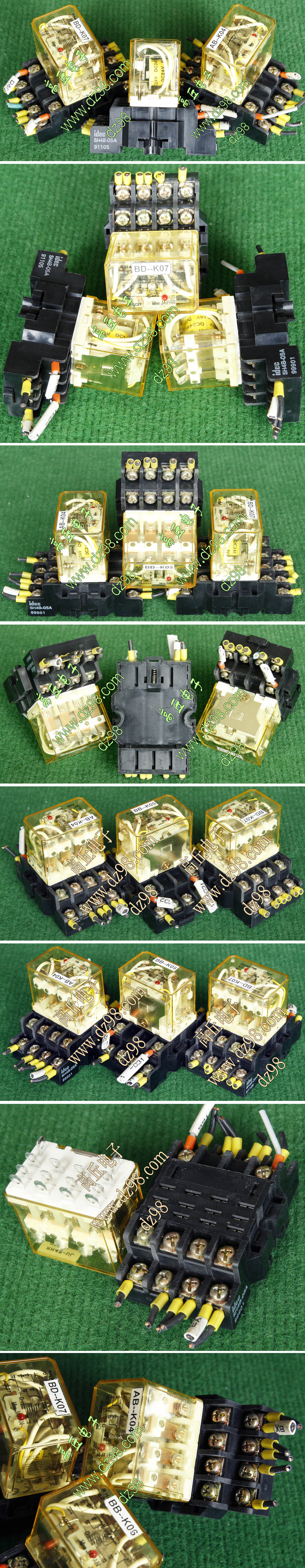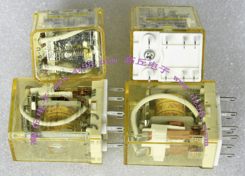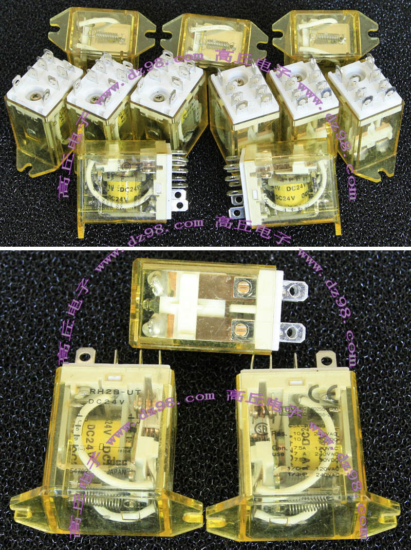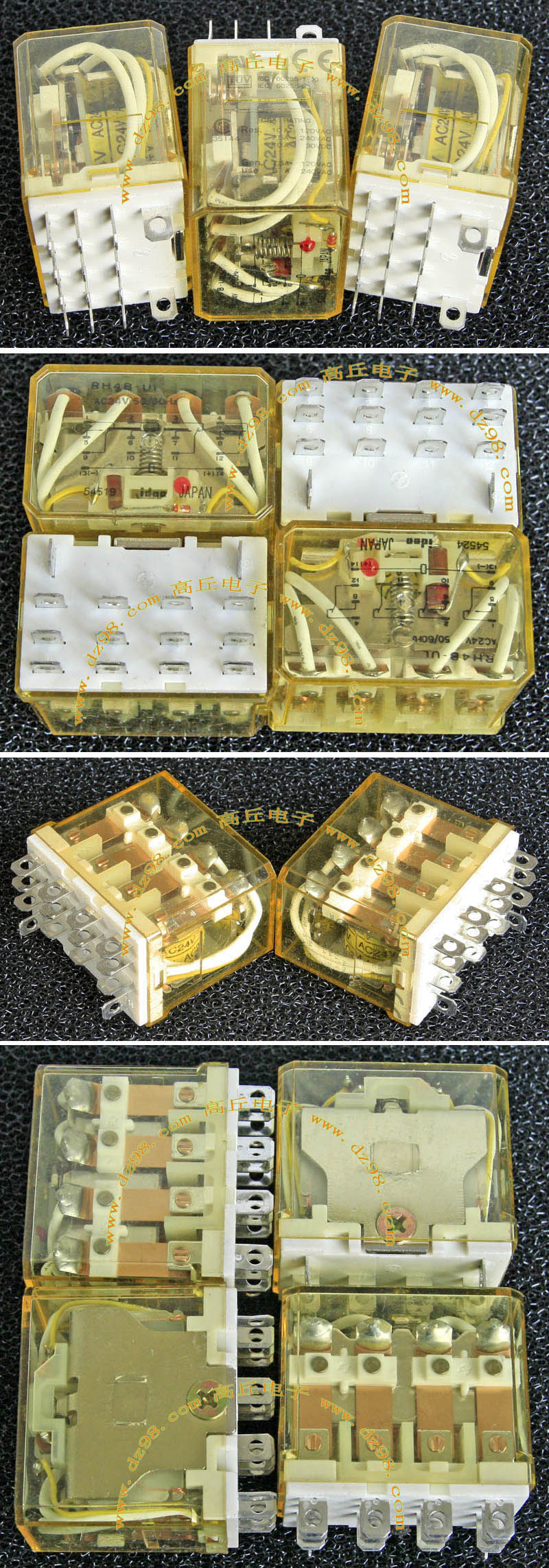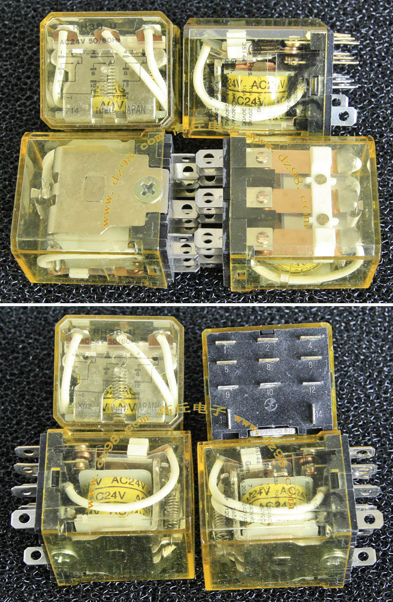 拆机品 | 拆机件,外观约9.5成新,厂牌:OMRON,实物看图,继电器是4组常开常闭触点,线圈电压DC24V。重量14只总重量约1320克。 |