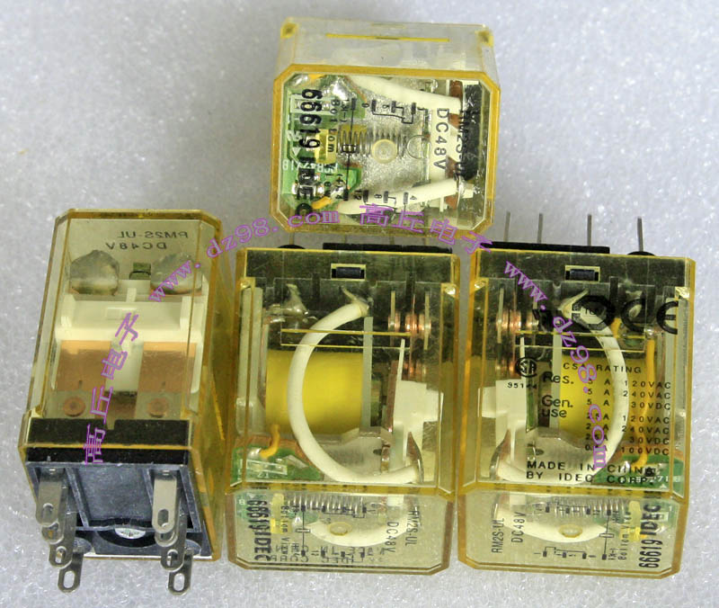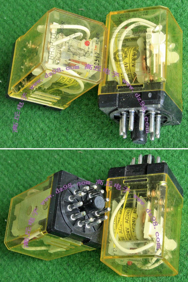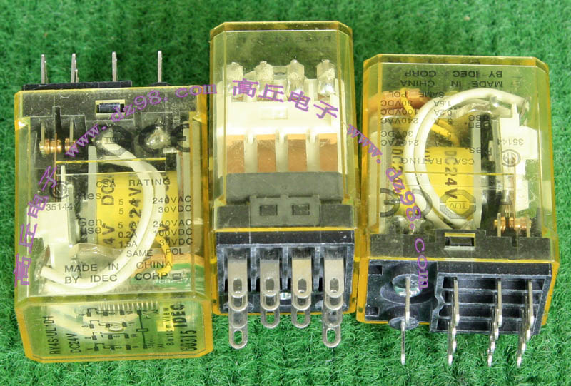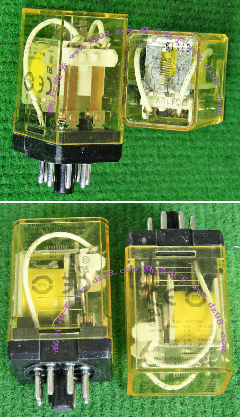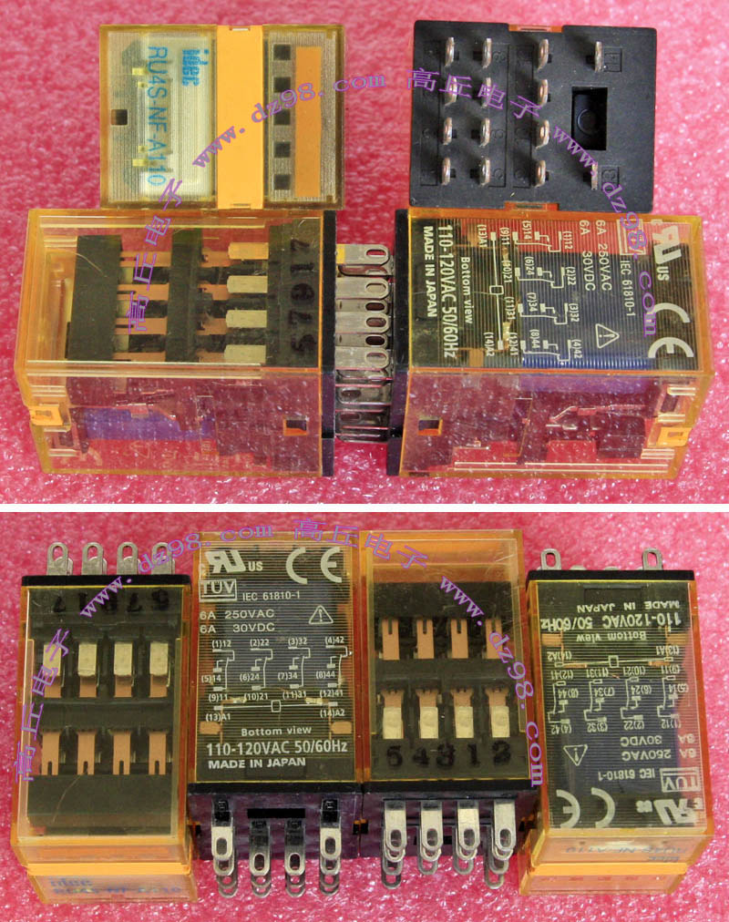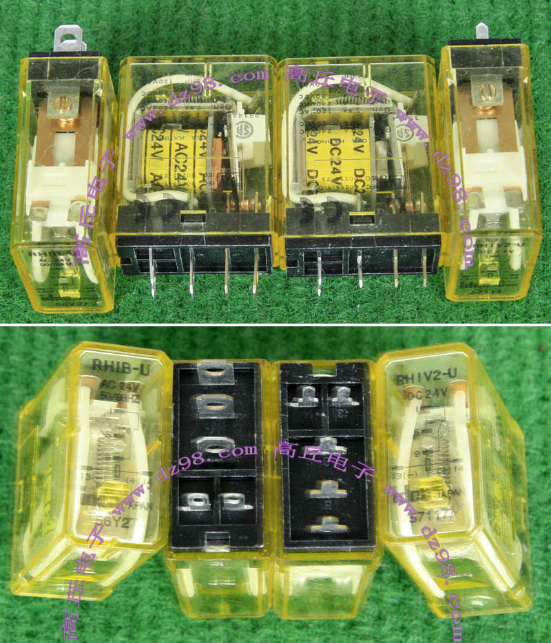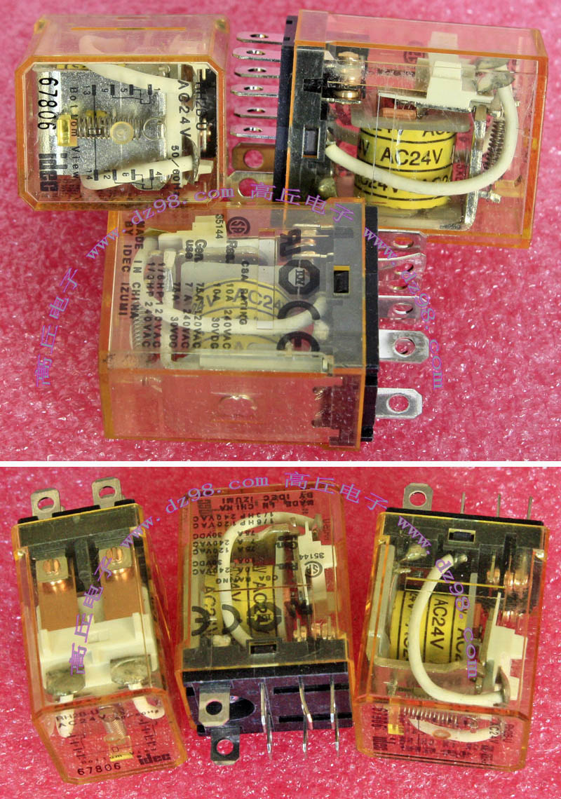 拆机品 | 拆机件,外观约9.5成新,厂牌:OMRON,实物看图,继电器是4组常开常闭触点,线圈电压DC24V。重量14只总重量约1320克。 |