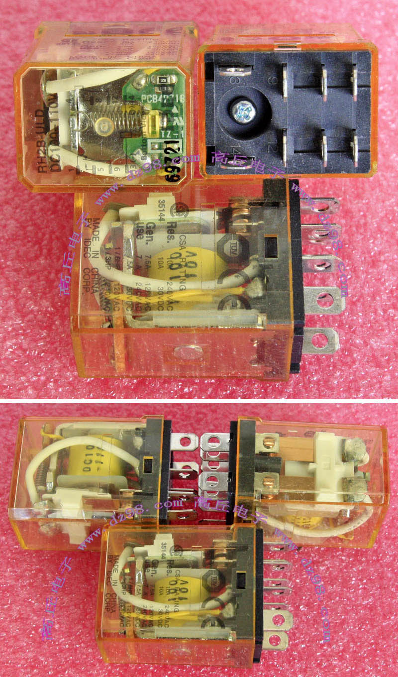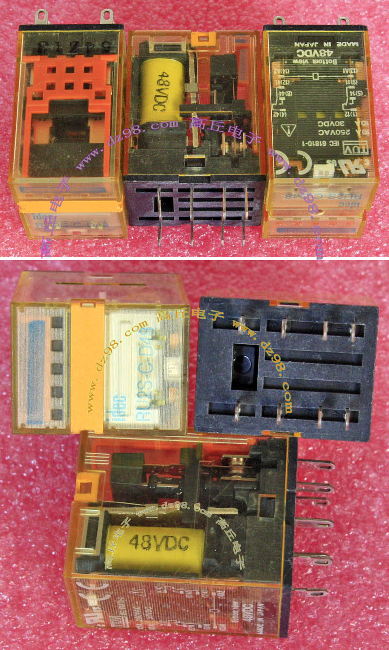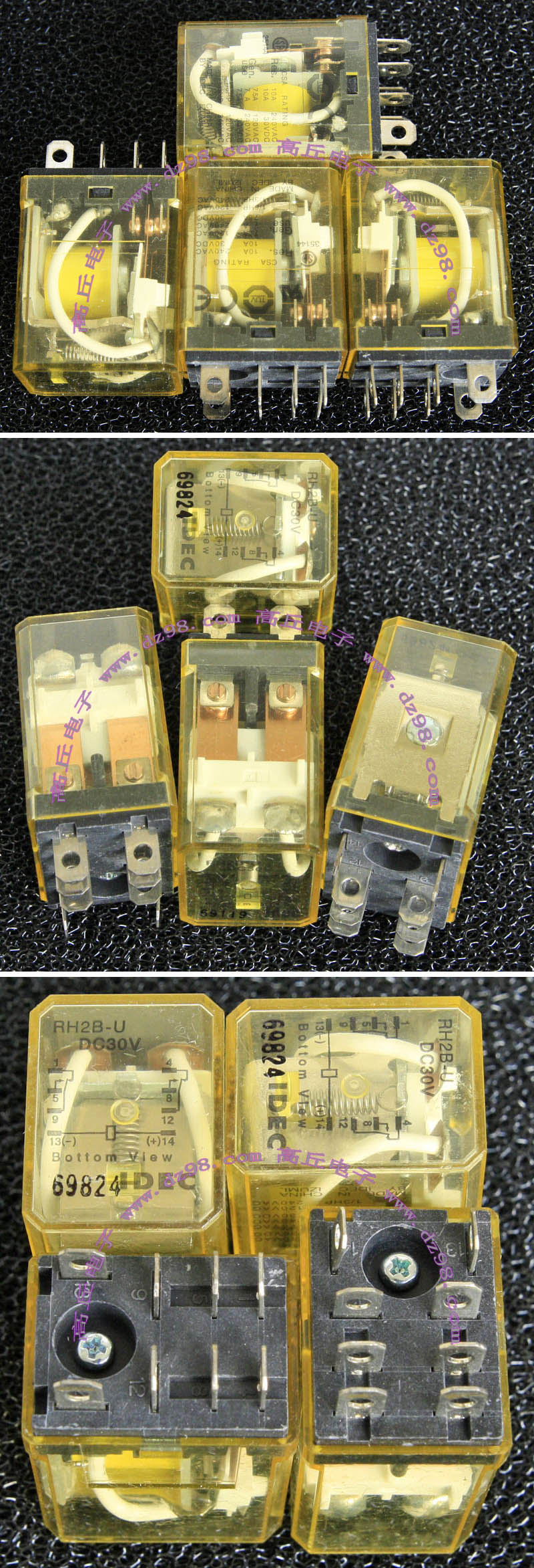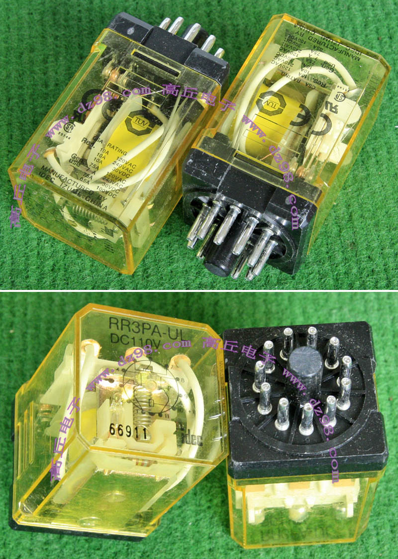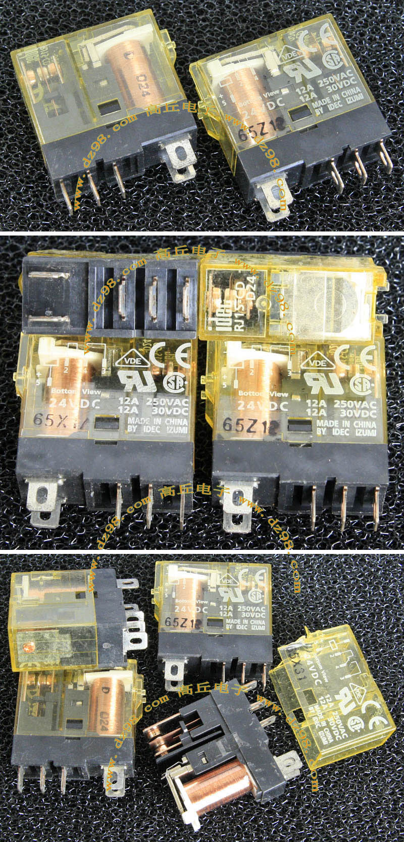 拆机品 | 拆机件,外观约9.5成新,厂牌:OMRON,实物看图,继电器是4组常开常闭触点,线圈电压DC24V。重量14只总重量约1320克。 |