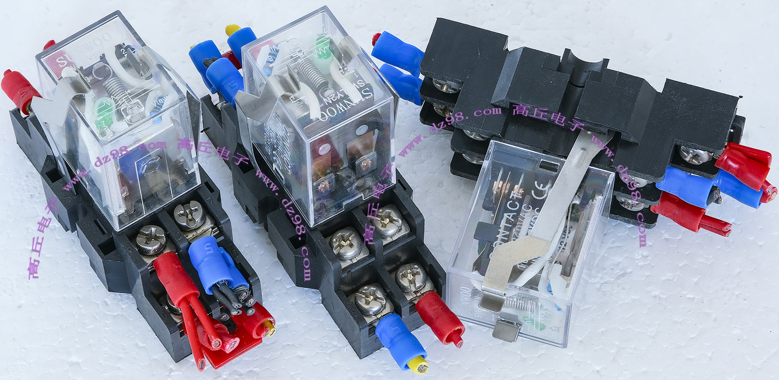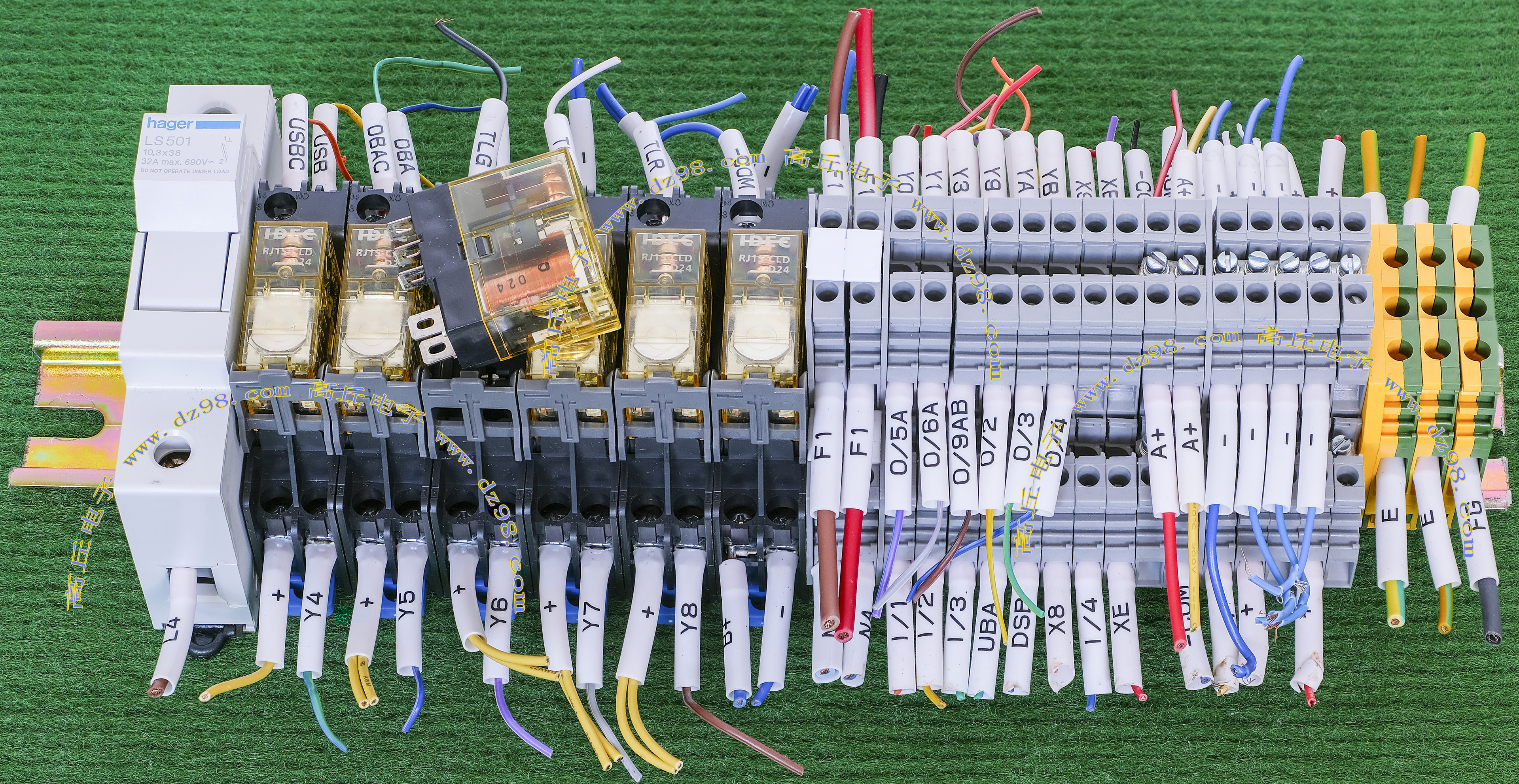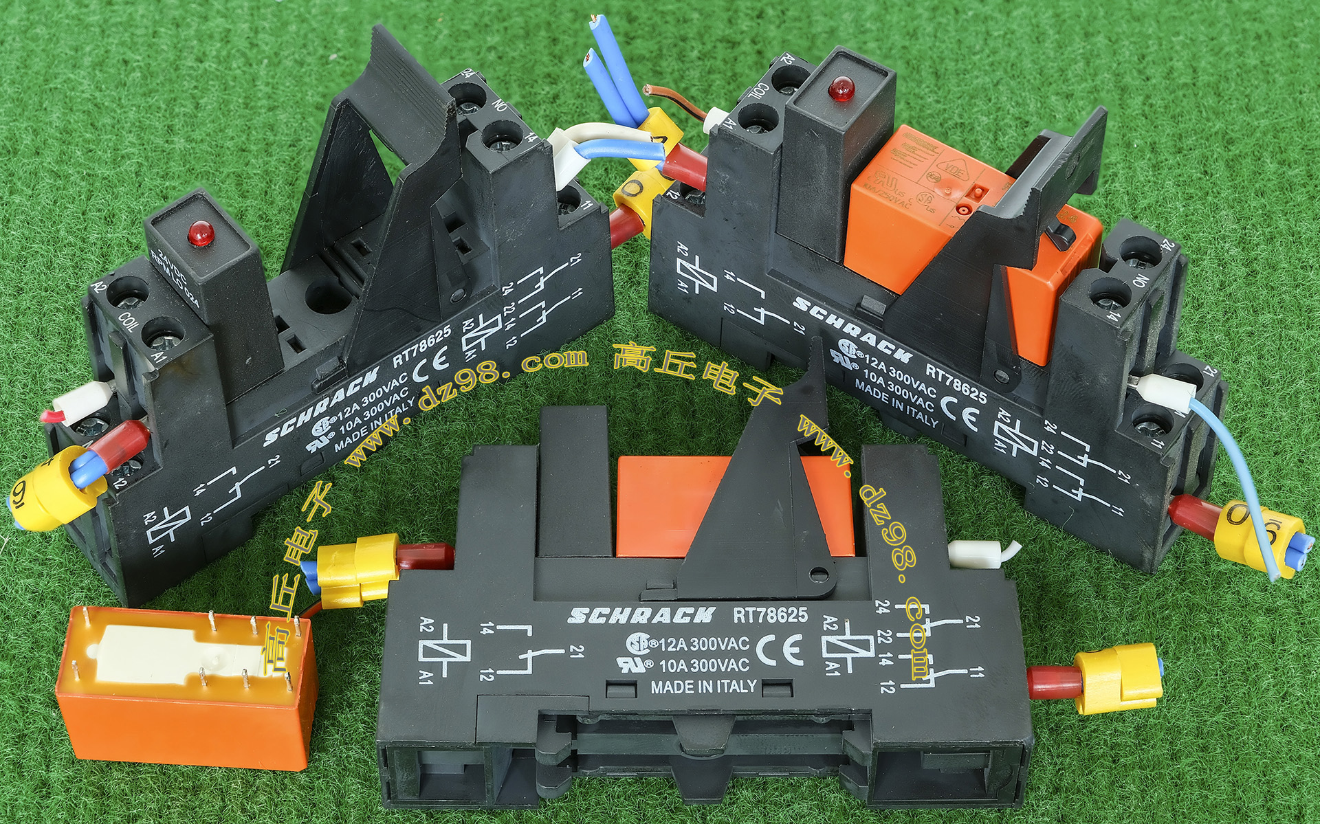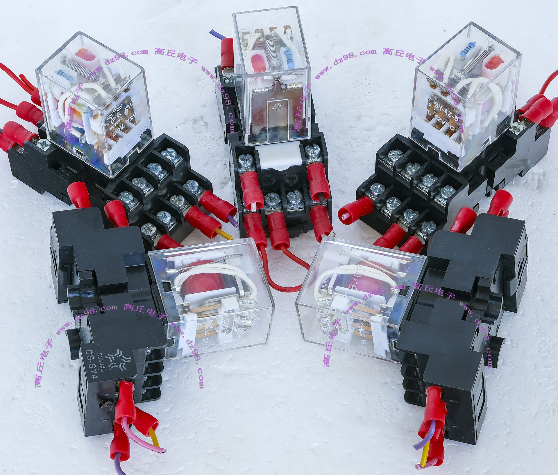 拆机件 | 拆机件,实物参照图片,6只带插座继电器,线圈DC24V,一组常开常闭触点,触点电压250V 12A。20档接线端子,一只保险丝座。 |