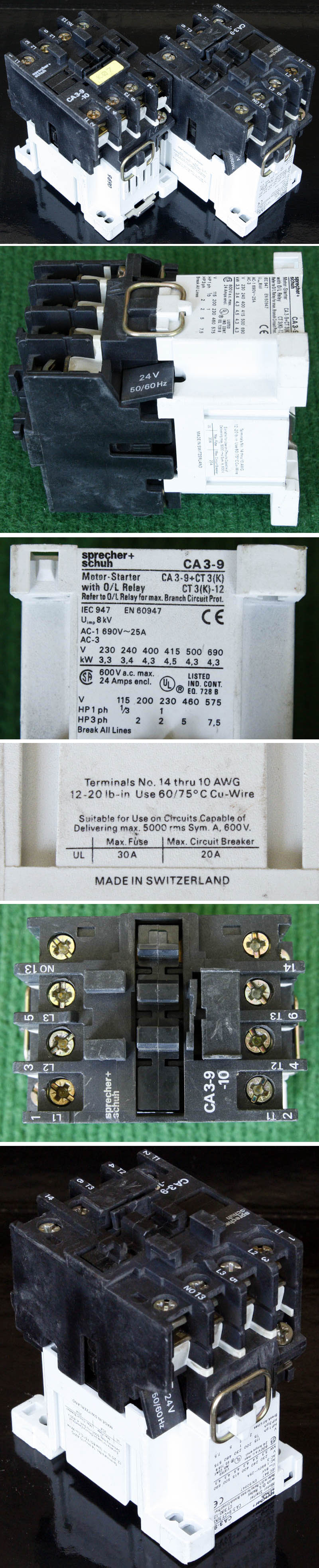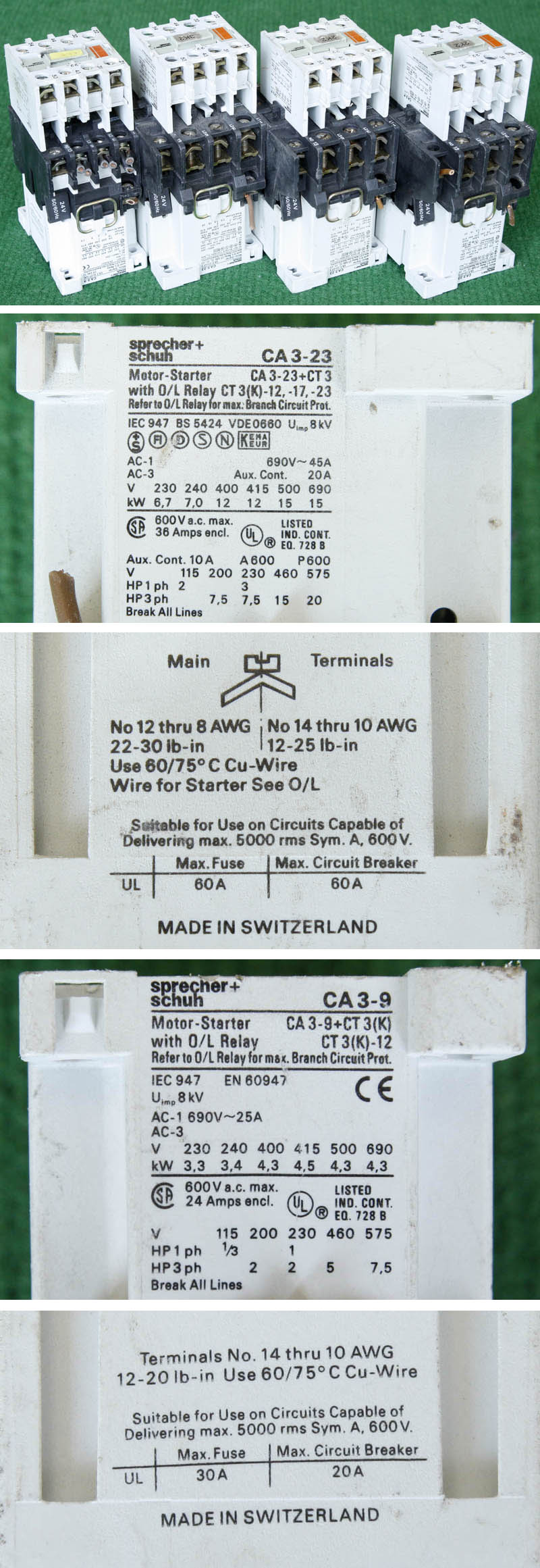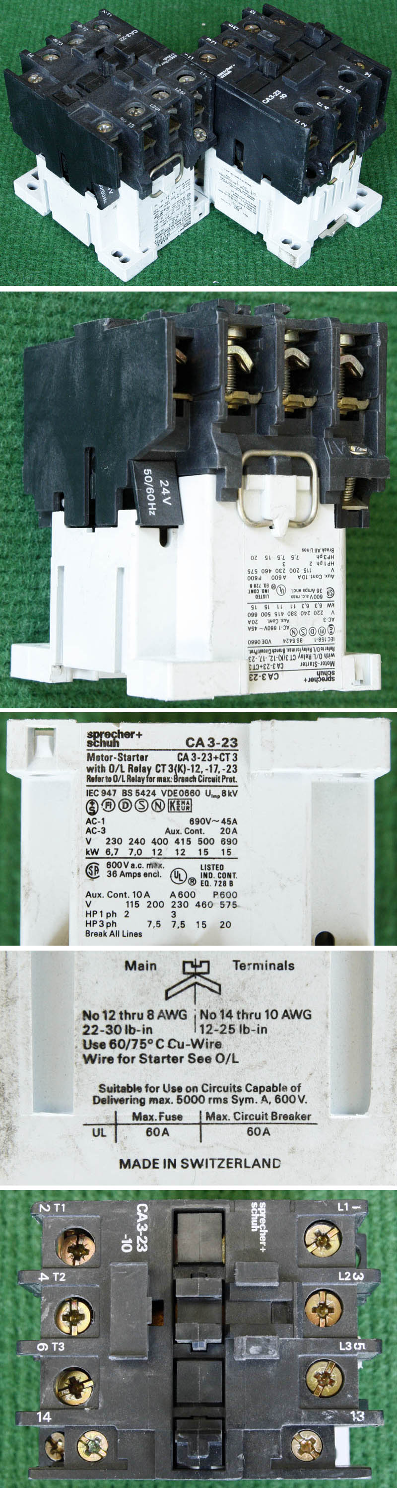 拆机品 | 外观8成新,厂牌:sprecher+schuh,详细数据看实物图片标记,线圈电压AC24V,外形尺寸:76毫米x55毫米,高度85毫米。重量约480克。 |